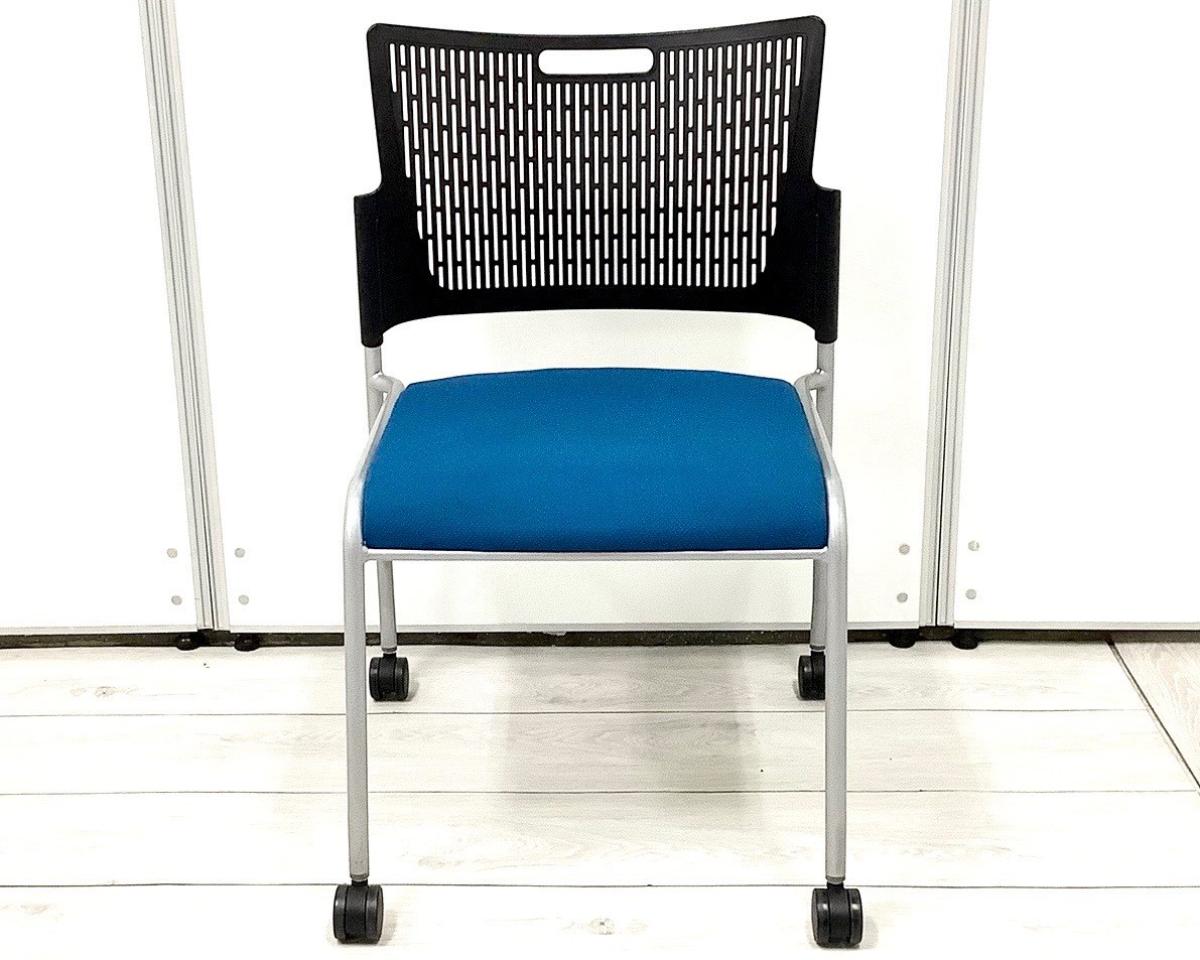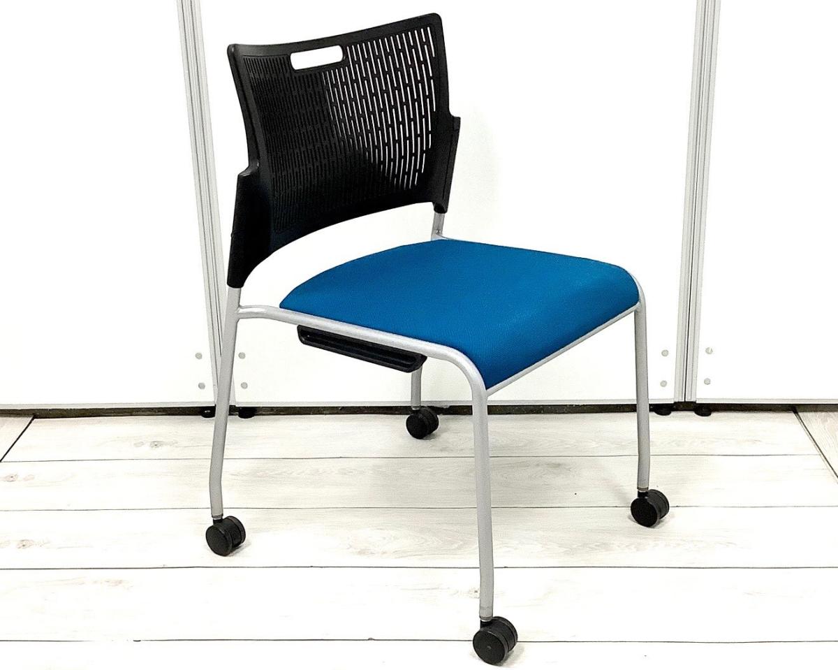 【在庫入替セール品!】コンパクトで人気なミーティングチェア!会議用スタッキングチェアの定番!重ねて収納可能な便利な商品! ■オカムラ/レーテチェア/ブルー 【キャスター無で安定感〇】