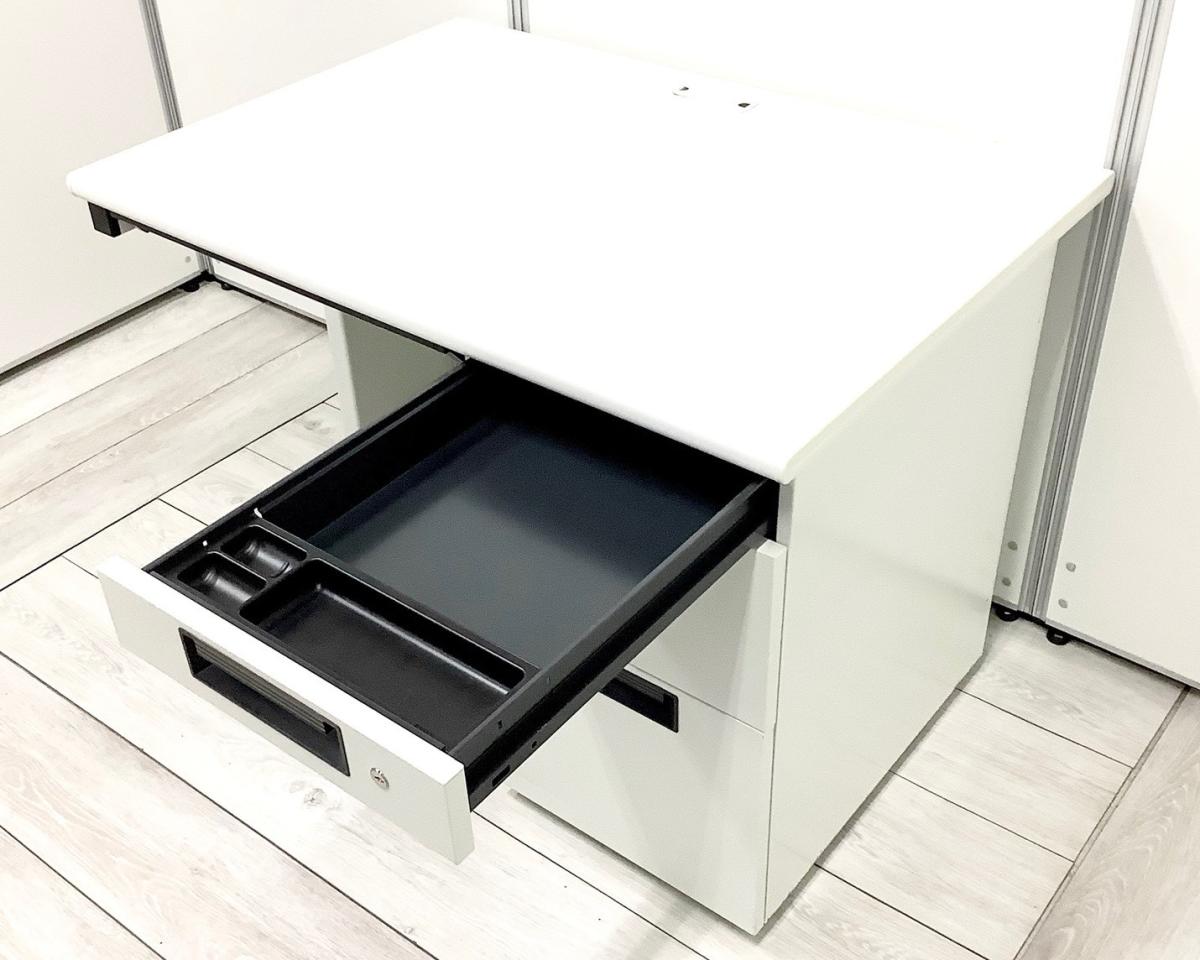 【収納とワークスペースの両立!コンパクトな片袖机が入荷!】プラス(PLUS) 片袖机 横幅1000㎜ ホワイト【AD】