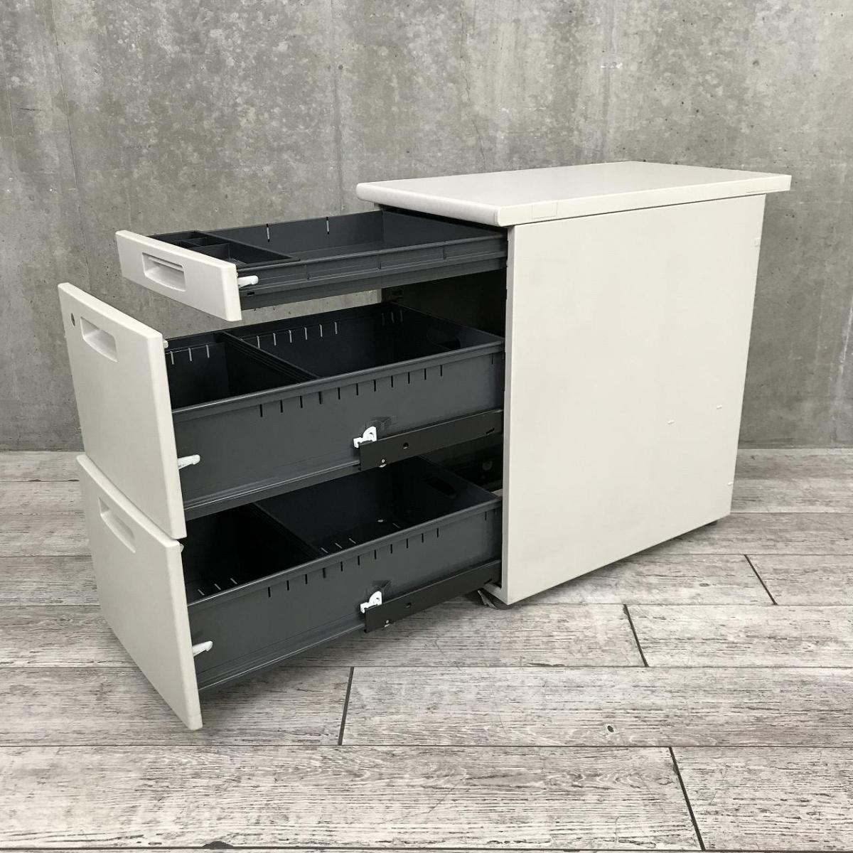 - 多数不具合ありその脇机・ワゴンの本来の効用を果たすための機能以外の多数が使用不可な状態。(例、引出が開閉しづらい、 キャスターロック機能使用不可、ラッチ不良 等がある。)