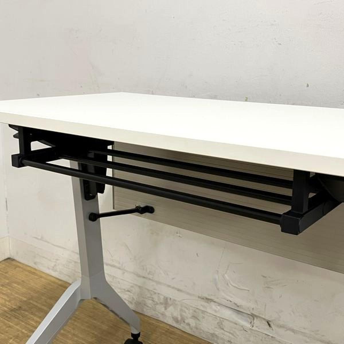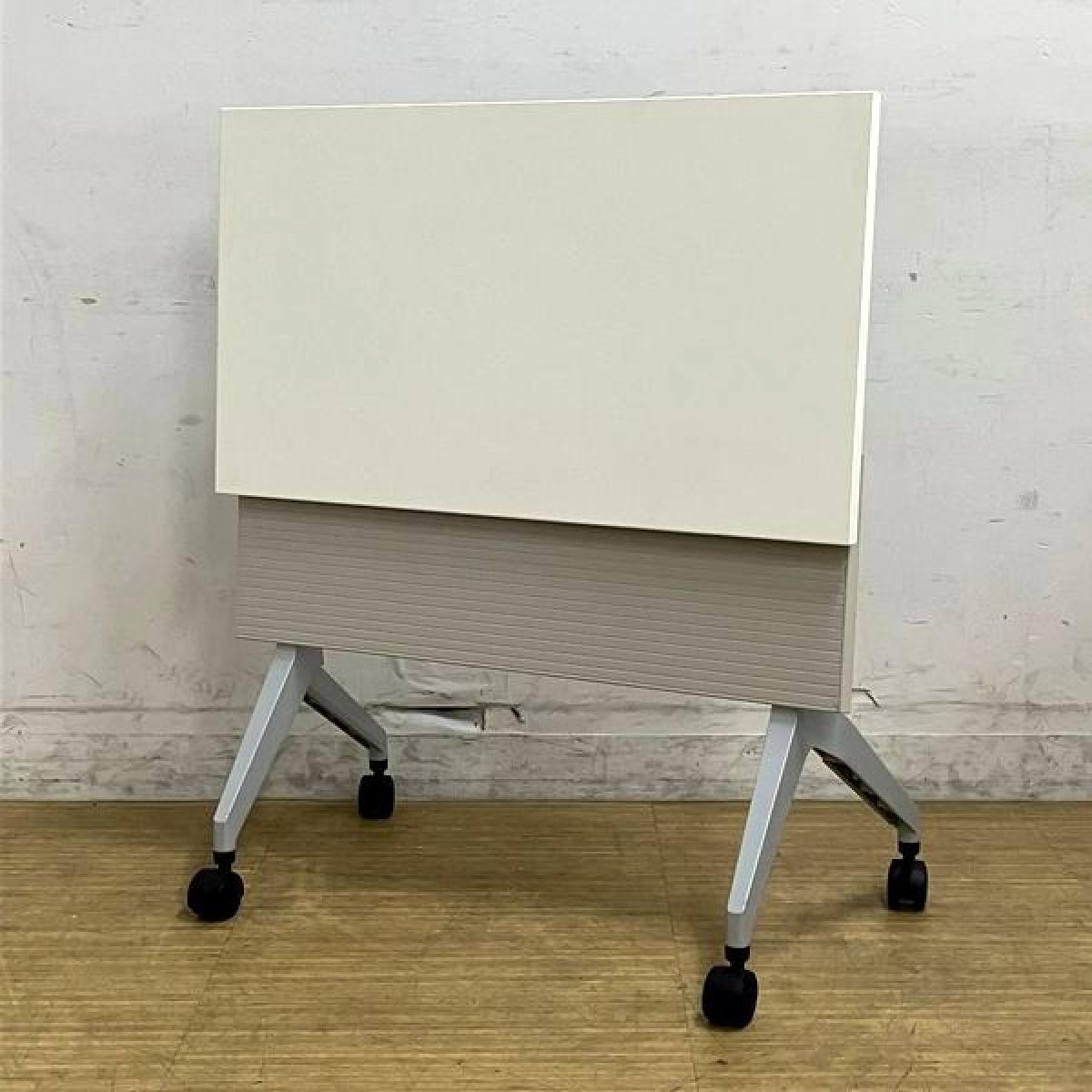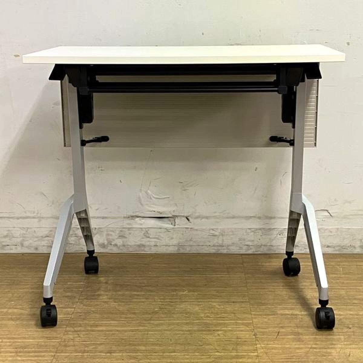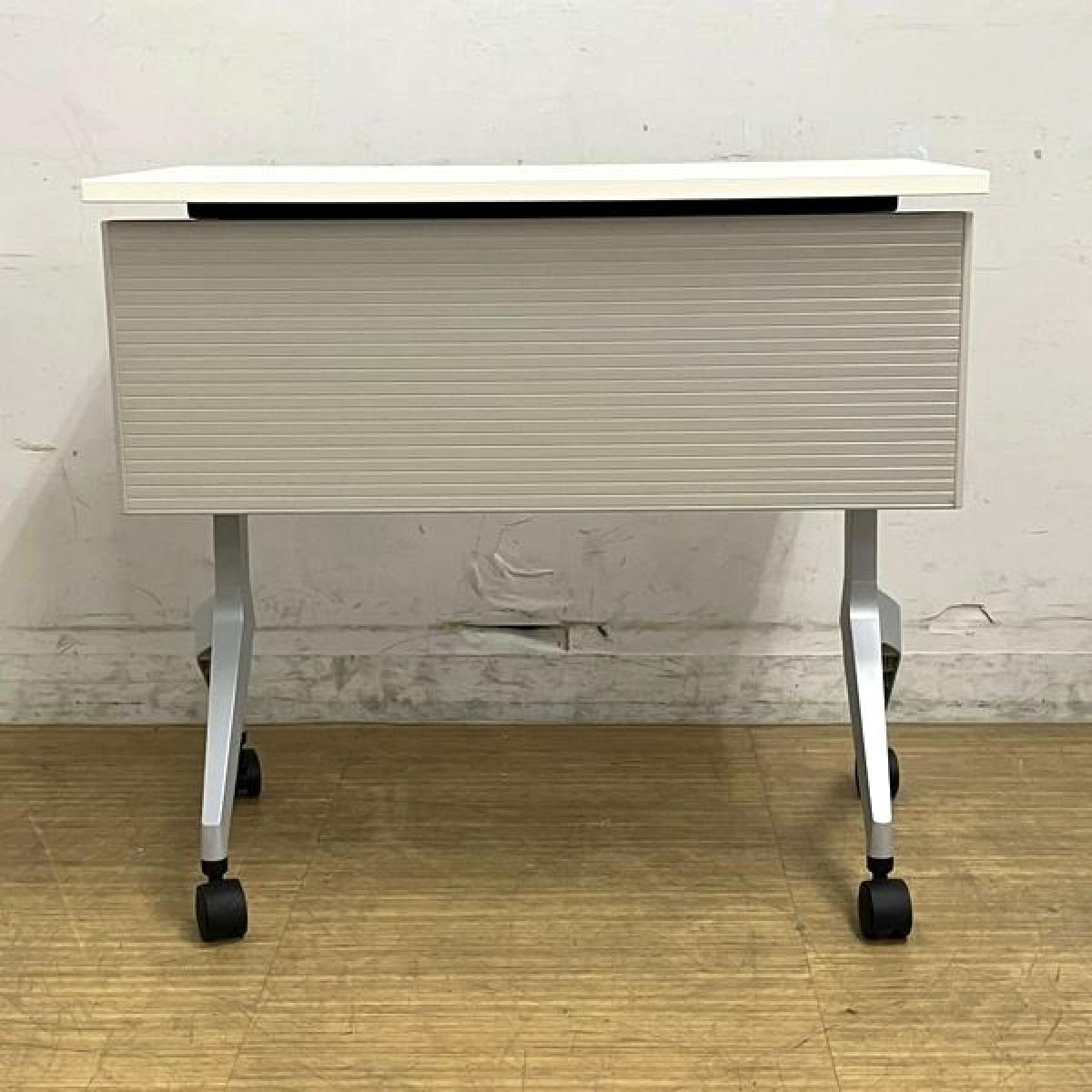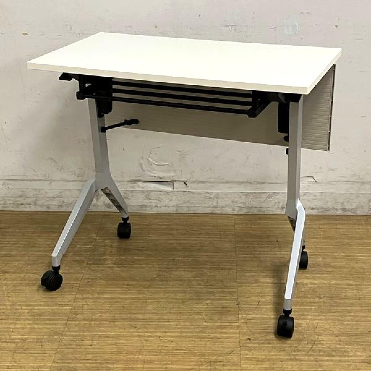 【定価約7万円】コンパクトな幅800㎜サイズのスタッキングテーブル! ■内田洋行/パラグラフ/ホワイト フラップテーブル 天板跳ね上げ 幕板付き
