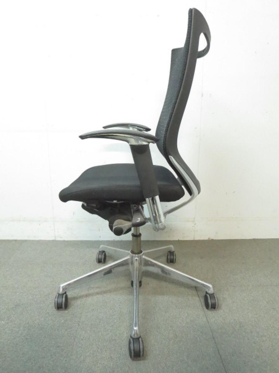 【オフィスの執務室、会議室におすすめ!】■オカムラ(okamura)製 バロン(Baron)チェア 肘付き ハイバック ■背・座面メッシュ ■可動肘 ■ヘッドレスト付き ■ブラック【硬めの座面が大人気!国産メッシュチェアの代表格!】