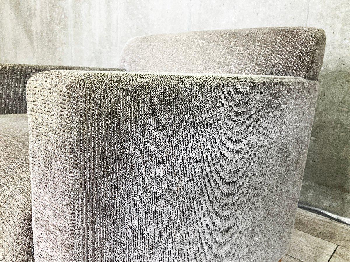 無駄のないボックスシルエットに、しっかりと厚みのあるクッションを組み合わせた端正なフォルムが特徴。 直線的なアームや背もたれに対し、ファブリックの柔らかな質感が加わることで、空間に落ち着きと温かみをもたらします。