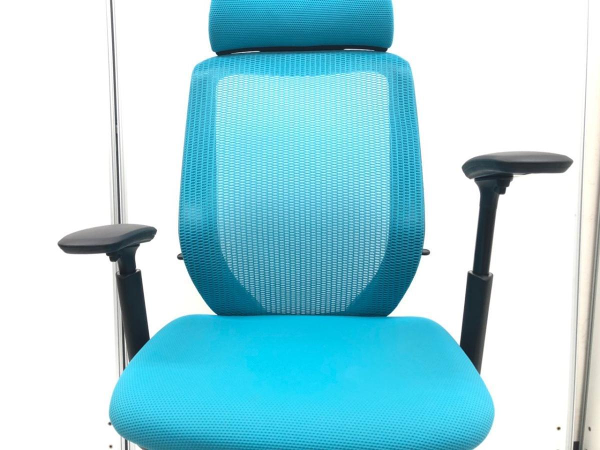 《年末在庫入替セール/㉕/8》オカムラ製の人気オフィスチェア【シルフィーメッシュ/可動肘/ヘッドレスト付き/ブルーグリーン】が値下されました!