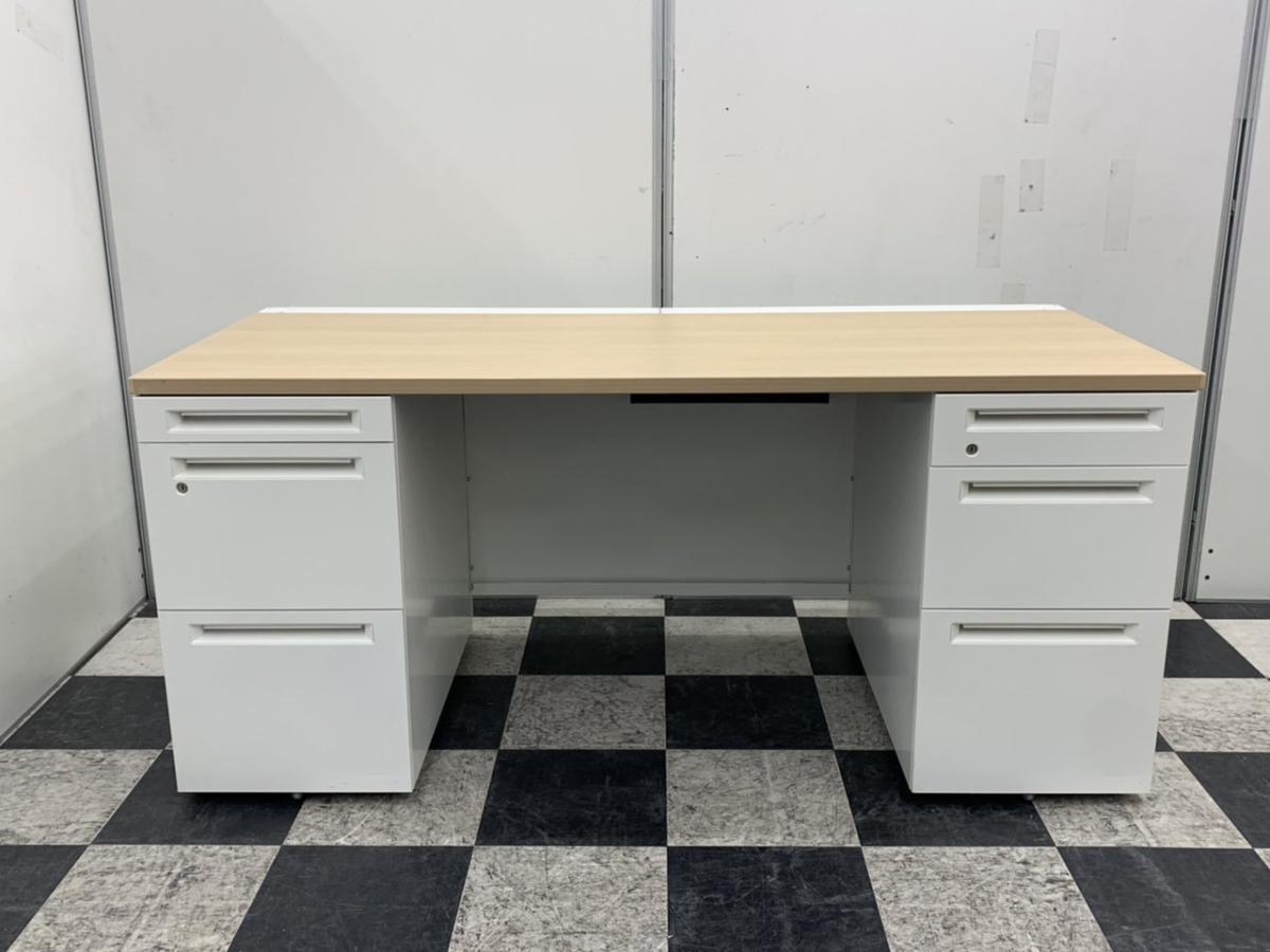 【上長席にいかがでしょうか?】◆オカムラ/アドバンス 木目 W1600 両袖机 ワゴン 収納 家具 在宅ワーク リユース 中古家具 九州最大級《オフィスバスターズ福岡博多店は、福岡を拠点として、日本全国へ中古オフィス用品・オフィス家具を提供しております》