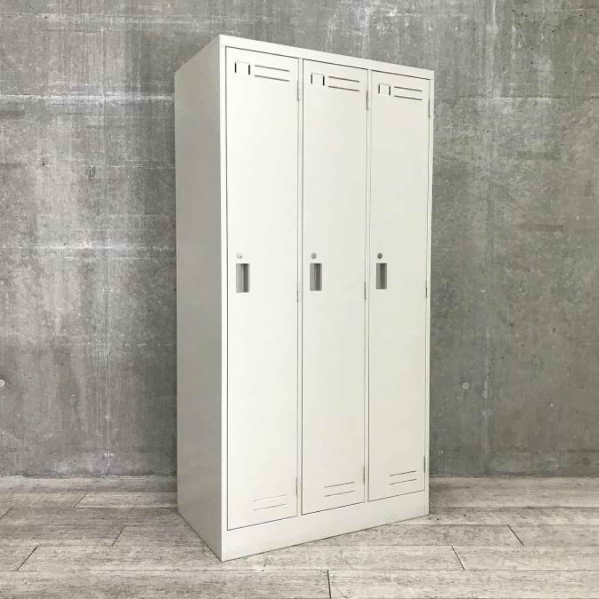 【縦型なので長めの衣類も収納可能!増員にもオススメ!】■コクヨ(KOKUYO)製 LKシリーズ 3人用更衣ロッカー ■グレー ■シリンダー錠【IB】