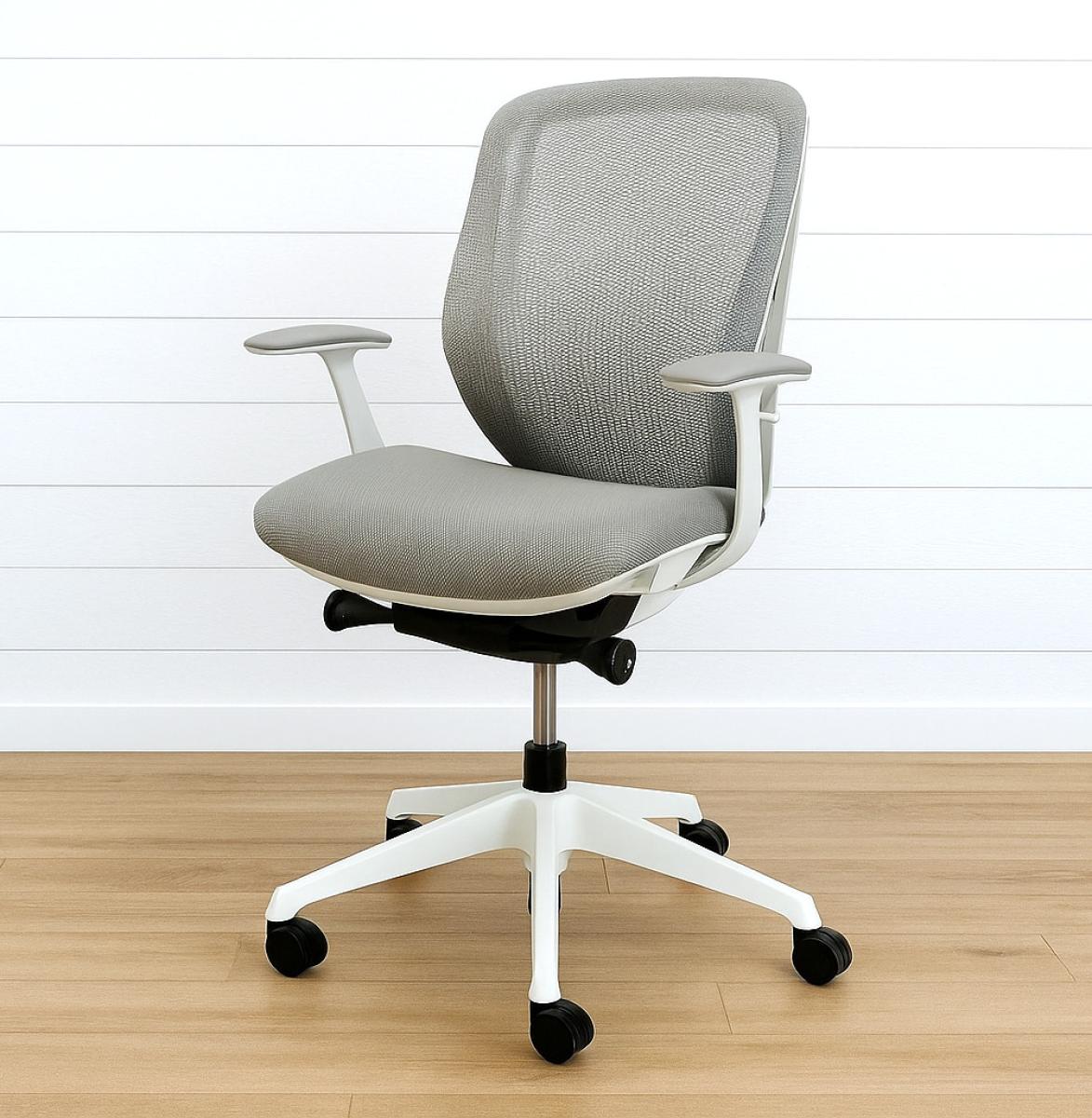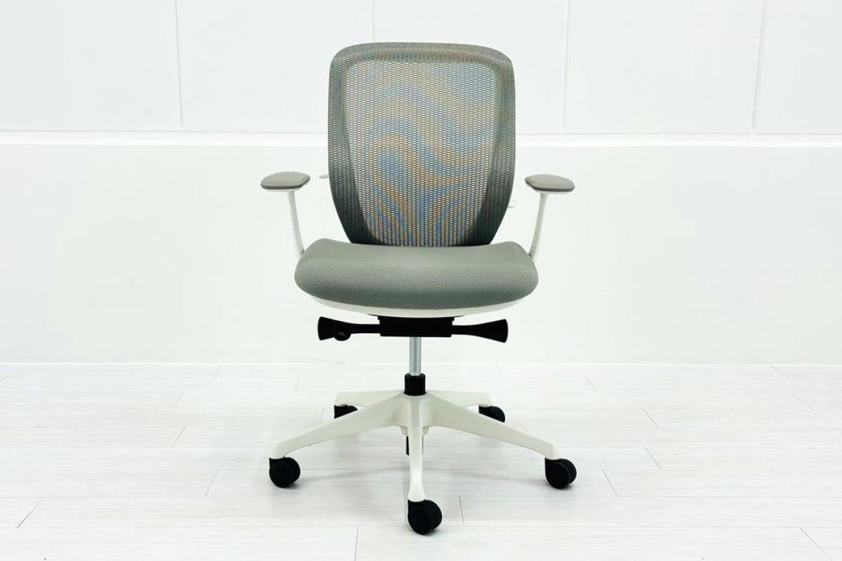 【背のカーブを変えられる新感覚のオフィスシーティング!】■オカムラ シルフィーチェア 可動肘付 グレー ブラックフレーム ■新感覚のオフィスシーティング!【Okamrua Sylphy】