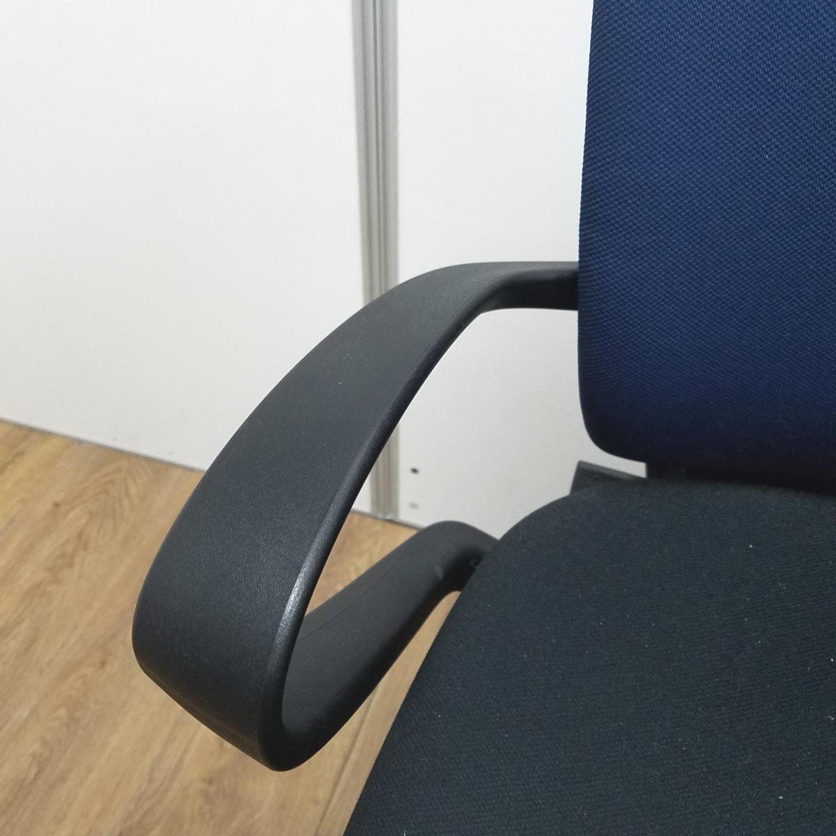 ★イトーキ製 フルゴ ネイビーブルー ホワイトフレーム 肘付き ハイバック サークル肘※固定肘 樹脂脚 座る人を選ばない、個性派シンプルスタイル背もたれ上部の取手デザインには、汚れ対策、取り回しのしやすさ 肘付きハイバックチェア!!
