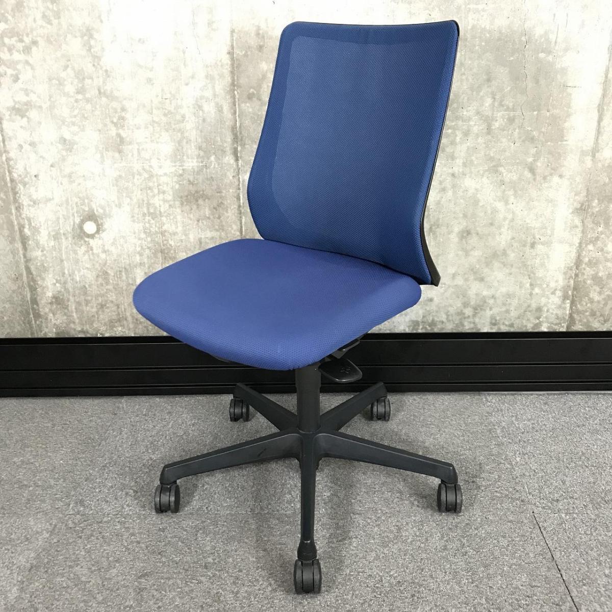 オカムラ フルーエントチェア 肘無しローバックモデル メッシュタイプ ミディアムブルー×ブラックフレーム