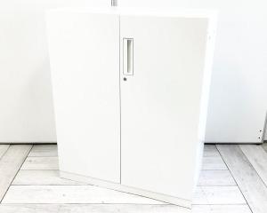 【収納物がひとめで分かる両開き戸タイプ!】■コクヨ(KOKUYO)製 エディア(EDIA)シリーズ 両開き書庫 ローキャビネット H1130㎜ ■天板・ベース付 ■ホワイト ■シリンダー錠