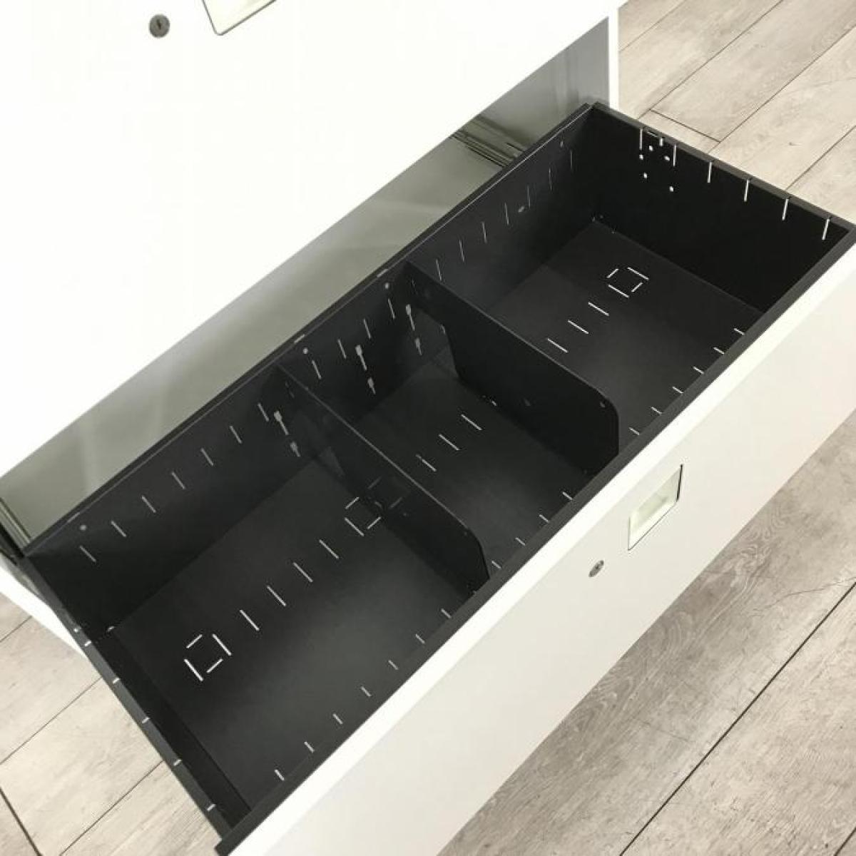 ■オカムラ(okamura)製 レクトラインシリーズ 3段ラテラル ローキャビネット ■天板・ベース付 ■シリンダー錠 ■ホワイト ■収納力抜群【弊社使用欄:A01037187】【SN】
