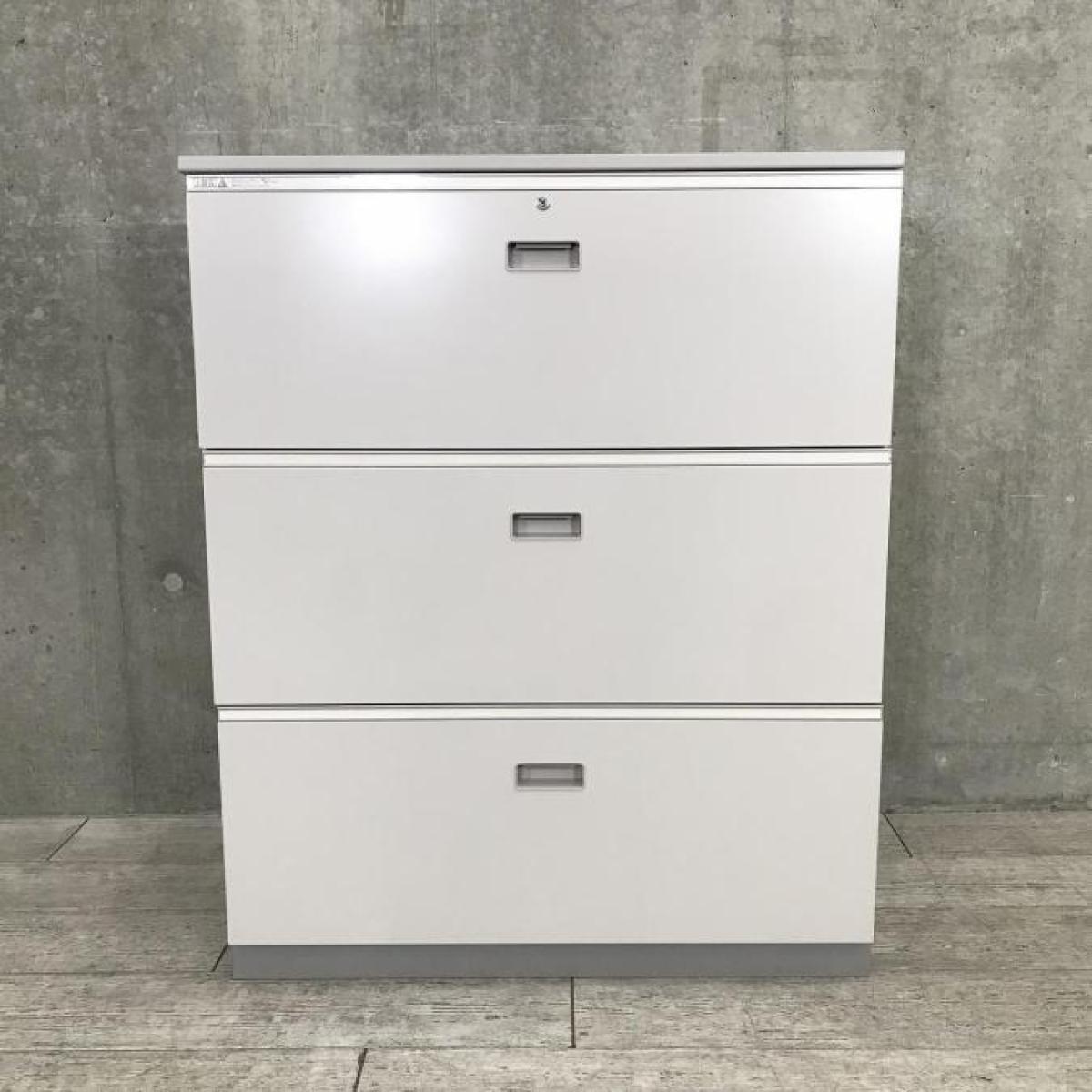 【4台限定在庫入替セール品】イトーキ製の定番書庫!人気の引き出し(ラテラル)タイプになります! イトーキ シンライン ホワイトグレー 3段ラテラル 天板付き