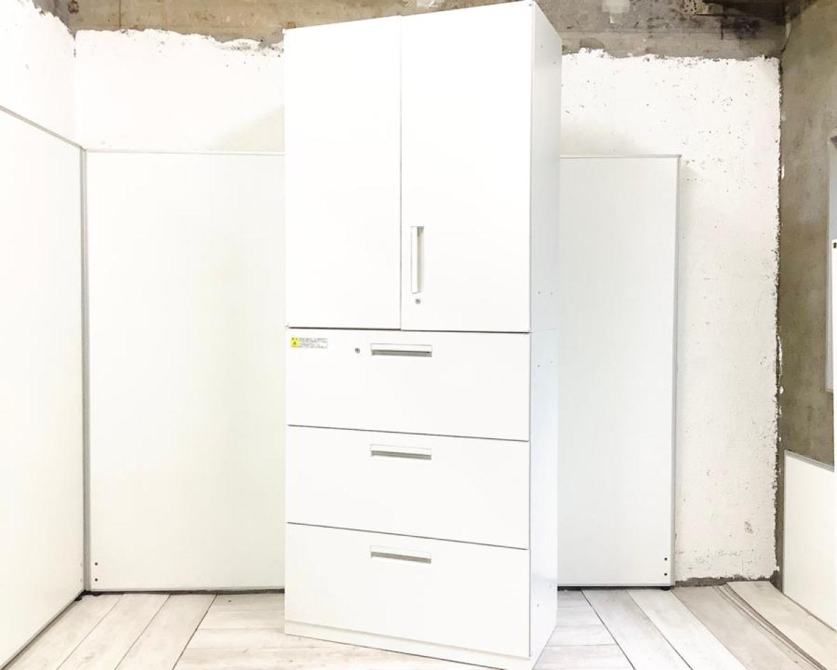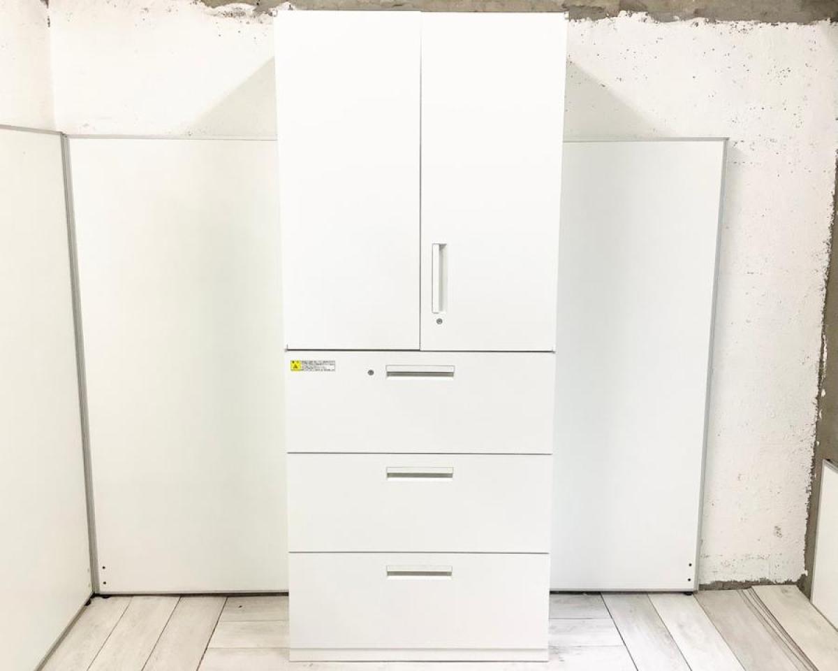 定番シリーズ!収納量抜群!観音開き+引き出しタイプのキャビネットセット! ■内田洋行/HS/ホワイト