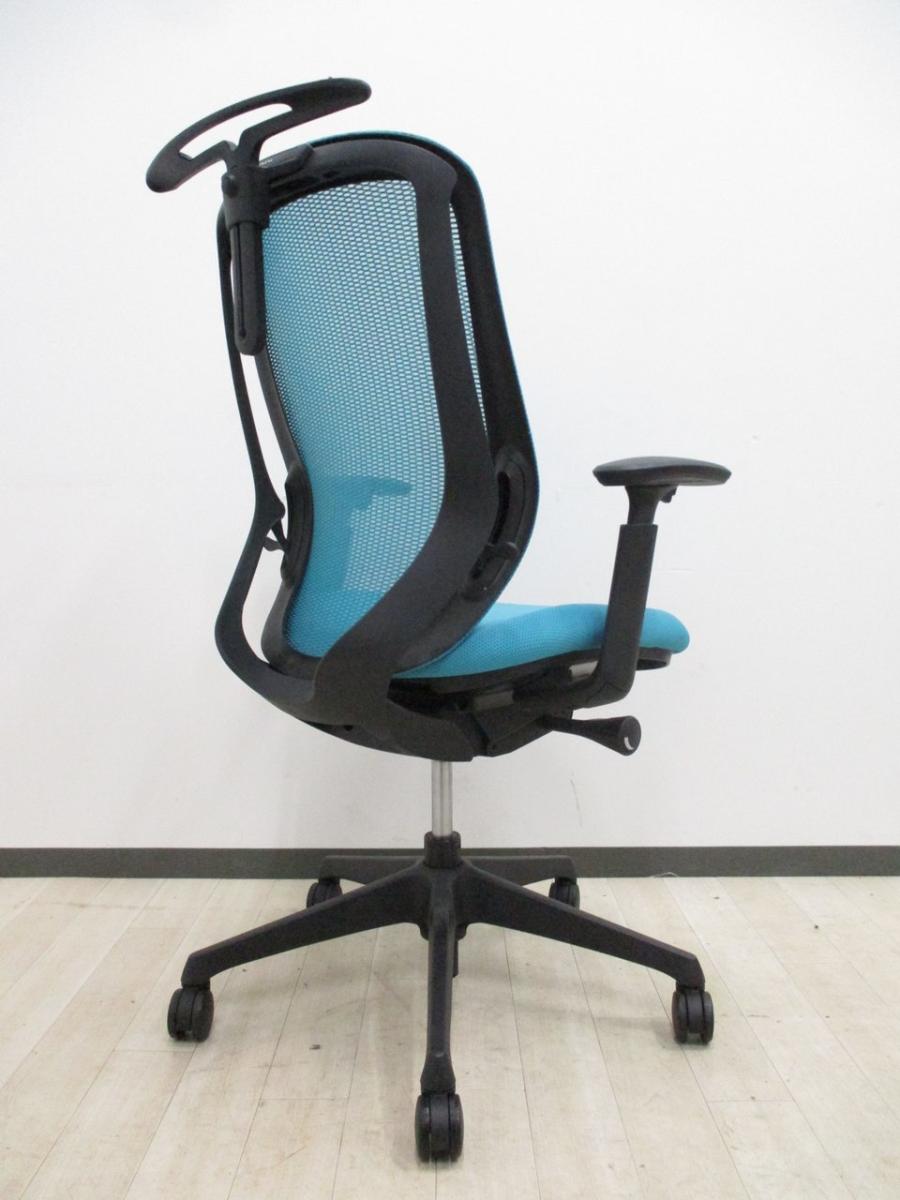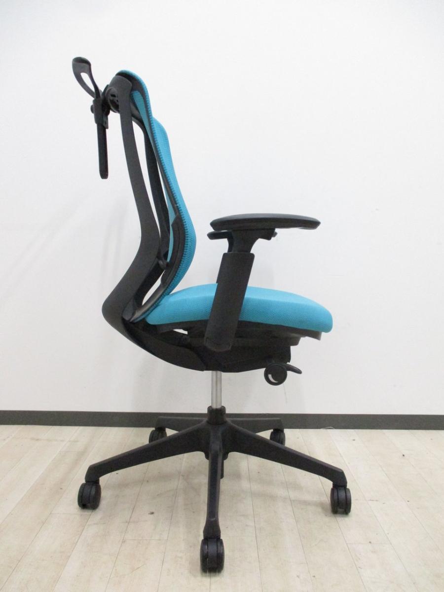 【新品ヘッドレスト交換済み】オカムラ/シルフィー/ブルー/可動肘