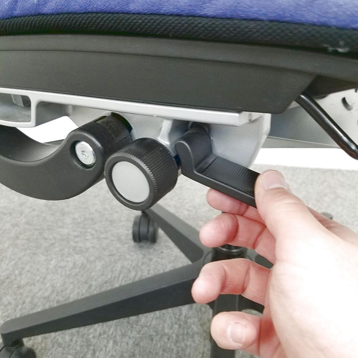 快適な座り心地に不可欠な調節機能である、上下昇降、座面の奥行き調整、リクライニングなどを備えており、操作もわかりやすく好評です。 特に、座面の奥行きは、座面下の左右に通った細いバーで調整でき、座ったままで軽やかに滑るように調整が可能です。 価格面では、新品では高めですが、中古は流通も多く、定価の3割前後の価格で高級チェアの座り心地を手に入れることができます!