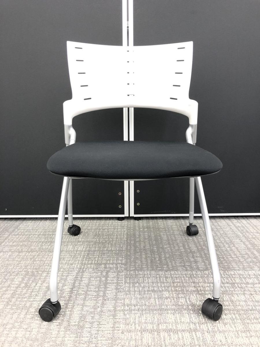 【関西倉庫在庫品】【平行に重ねて省スペース!使い勝手抜群のミーティングチェア!】■イトーキ マノスシリーズ ネスティングチェア 座ブラック 背ホワイト キャスター付【ITOKI Manos】【W】