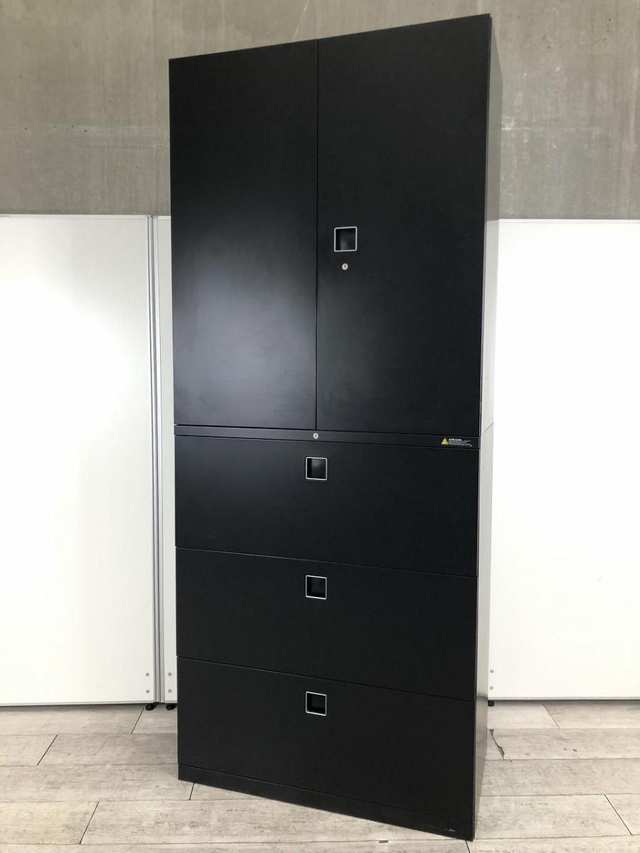 オカムラ レクトライン 3段ラテラル+両開き書庫 レアなブラックカラー 鍵付き シリンダー錠 ※打痕やキズが散見されます