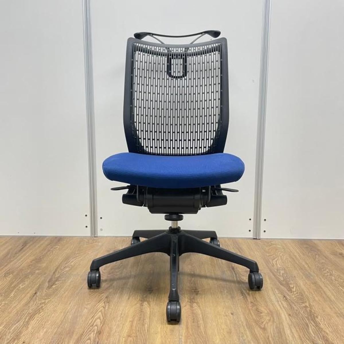 【在庫入替セール品】オカムラ(okamura)ヴィスコンテチェア ■色:ブルー(ブラックシェル)肘無し ハイバック仕様