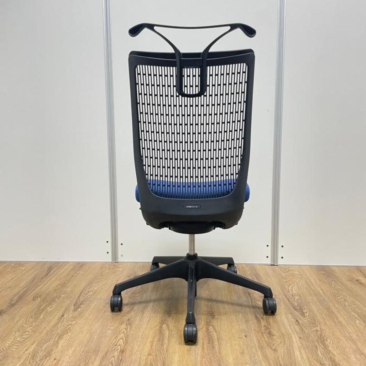 【関西倉庫在庫】オカムラ製 ヴィスコンテシリーズ ミディアムブルー ブラックフレーム コートハンガー付き 人間工学に基づいた心地よい座り心地! 高いデザイン性と快適なクッション性が人気 【弊社使用欄:A01046061】