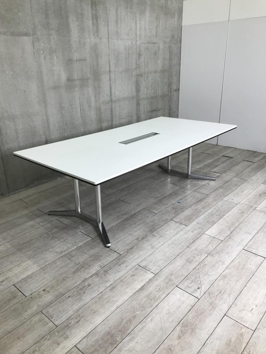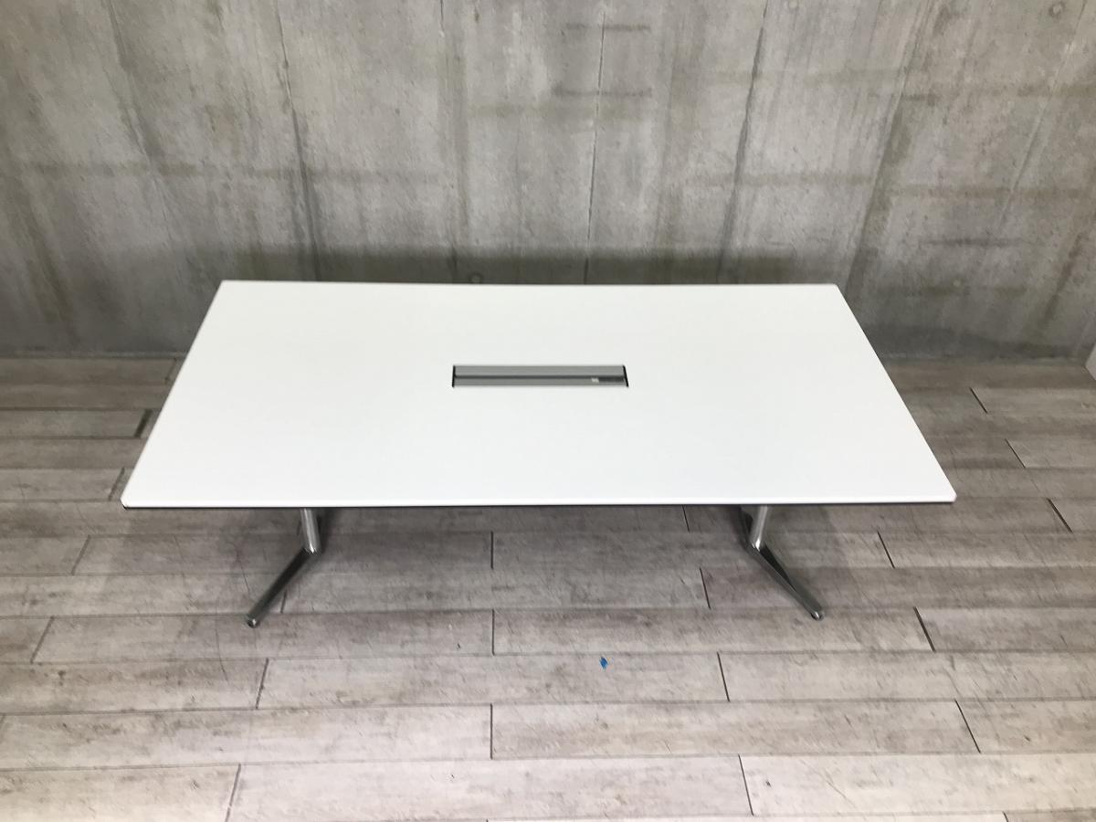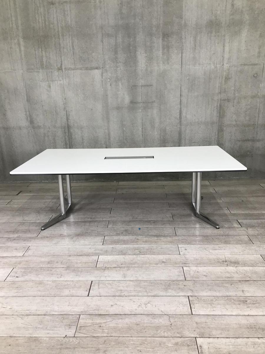 【オカムラ製高級テーブル、ラティオが入荷!人気の高い会議用テーブル!】■オカムラ(okamura)製 ラティオ(RATIO)シリーズ ミーティングテーブル 会議用 W2400×D1200㎜ ■配線口 ■天板:ホワイト/脚:ポリッシュ【2511】弊社使用欄【A01044622】- 埼玉本店