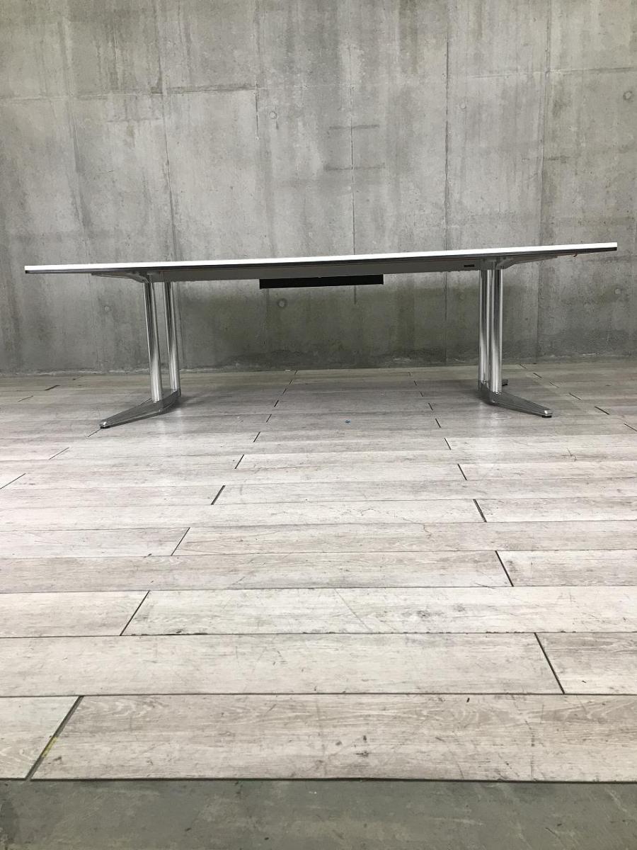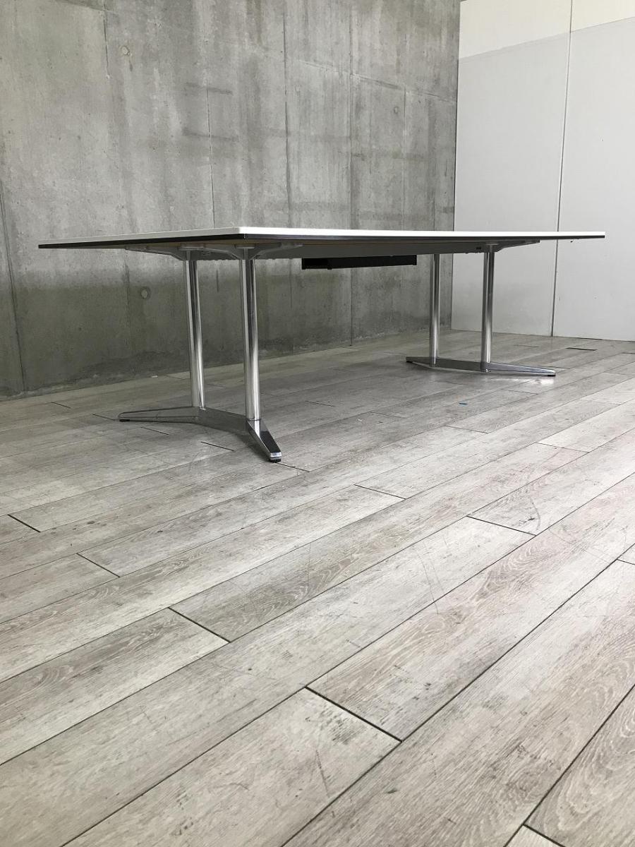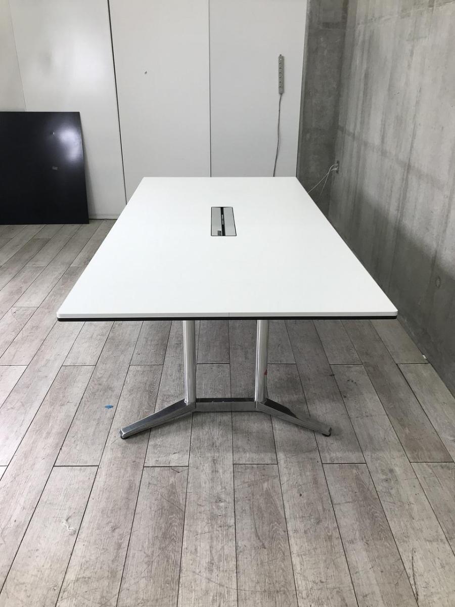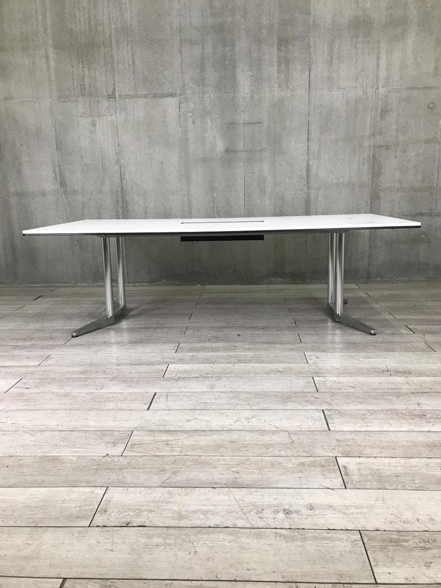 【オカムラ製高級テーブル、ラティオが入荷!人気の高い会議用テーブル!】■オカムラ(okamura)製 ラティオ(RATIO)シリーズ ミーティングテーブル 会議用 W2400×D1200㎜ ■配線口 ■天板:ホワイト/脚:ポリッシュ【2511】弊社使用欄【A01044622】- 埼玉本店