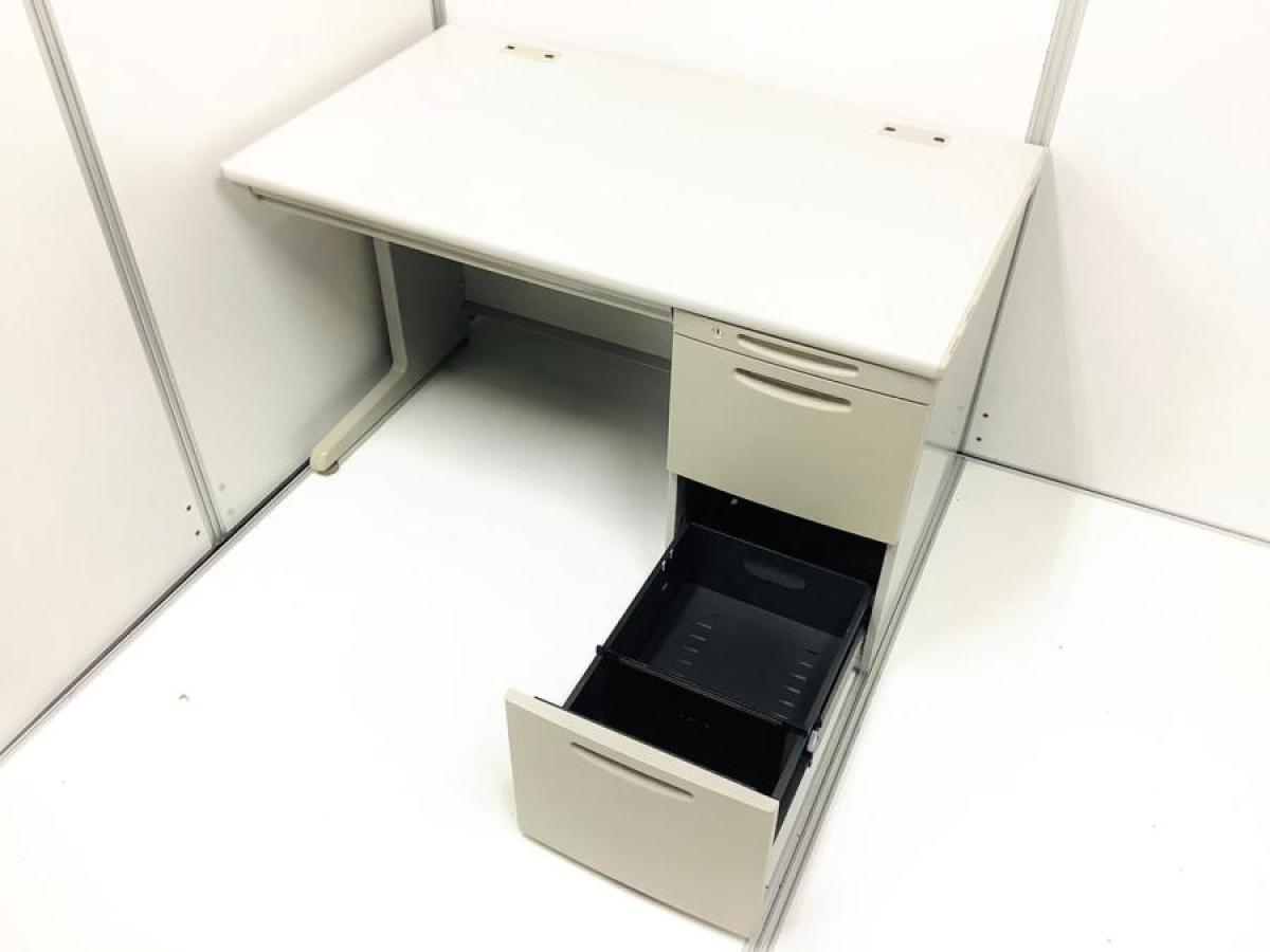 【オカムラの超定番シリーズ!袖一体型で書類をたっぷり収納可能!】■オカムラ (okamura)製 SD-Vシリーズ 片袖机 W1200mm×D700mm ■シリンダー錠 ■ライトグレー 【弊社使用欄:A01034077】