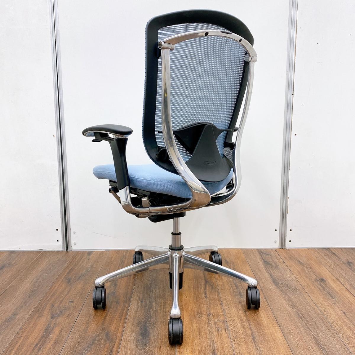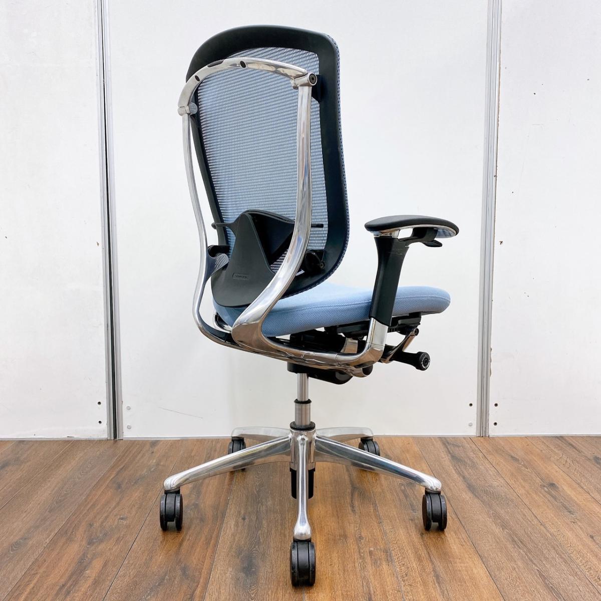 【王道チェア!】■オカムラ製(okamura) コンテッサ (Contessa) ハイバック 肘付き ■ライトブルー ■背面メッシュ ■ランバーサポート付 ■可動肘