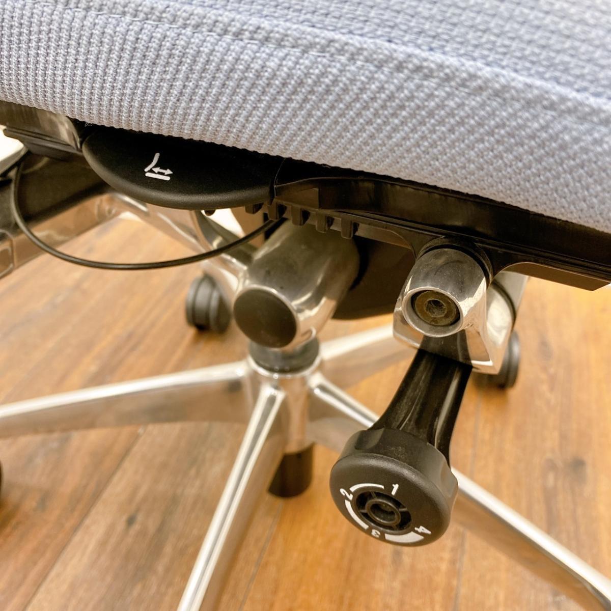 - 座面の前後スライド調整レバーで操作(前後50mm分調整で)できます。(グラデーションサポートメッシュタイプを除く)