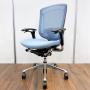【K9】【商品入替のため、残り7脚限り】【座面に使用感の汚れあり】オカムラ製 コンテッサシリーズ ライトブルー 背面メッシュ ランバーサポート付 可動肘 世界で認められた革新的タスクチェア! 人間工学に基づいた快適な座り心地を実現! 肘付きハイバックチェア!!
