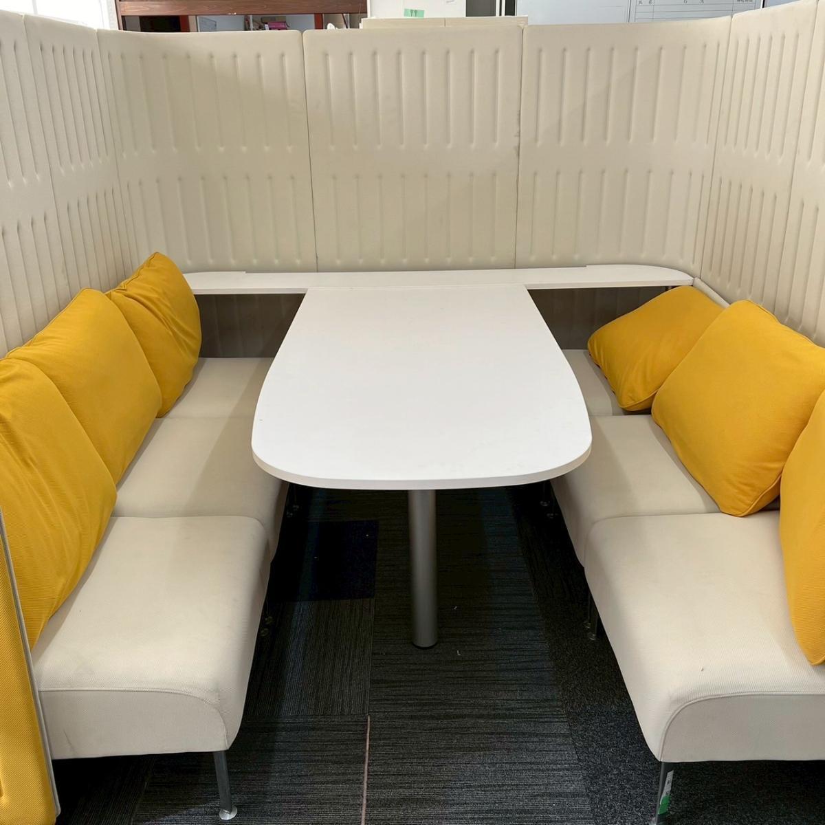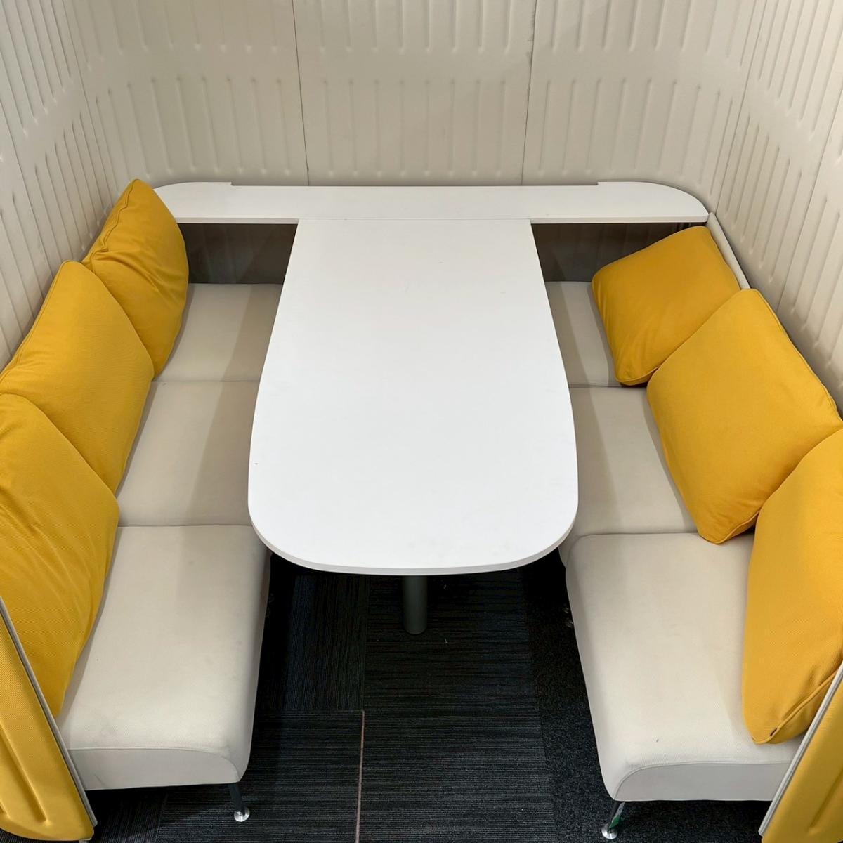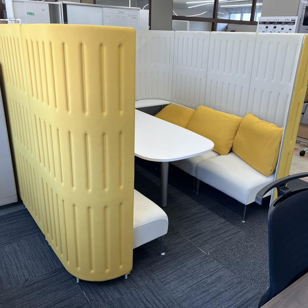 【南】★新品定価:200万円以上 ★《年末在庫入替セール/㉕/7》》オカムラ製の【ファミレスブース/マッフル/イエロー】が値下げされました! 「オフィスバスターズ福岡南店」は、福岡を拠点として、全国へ中古オフィス用品・オフィス家具を提供しております。- 福岡南店