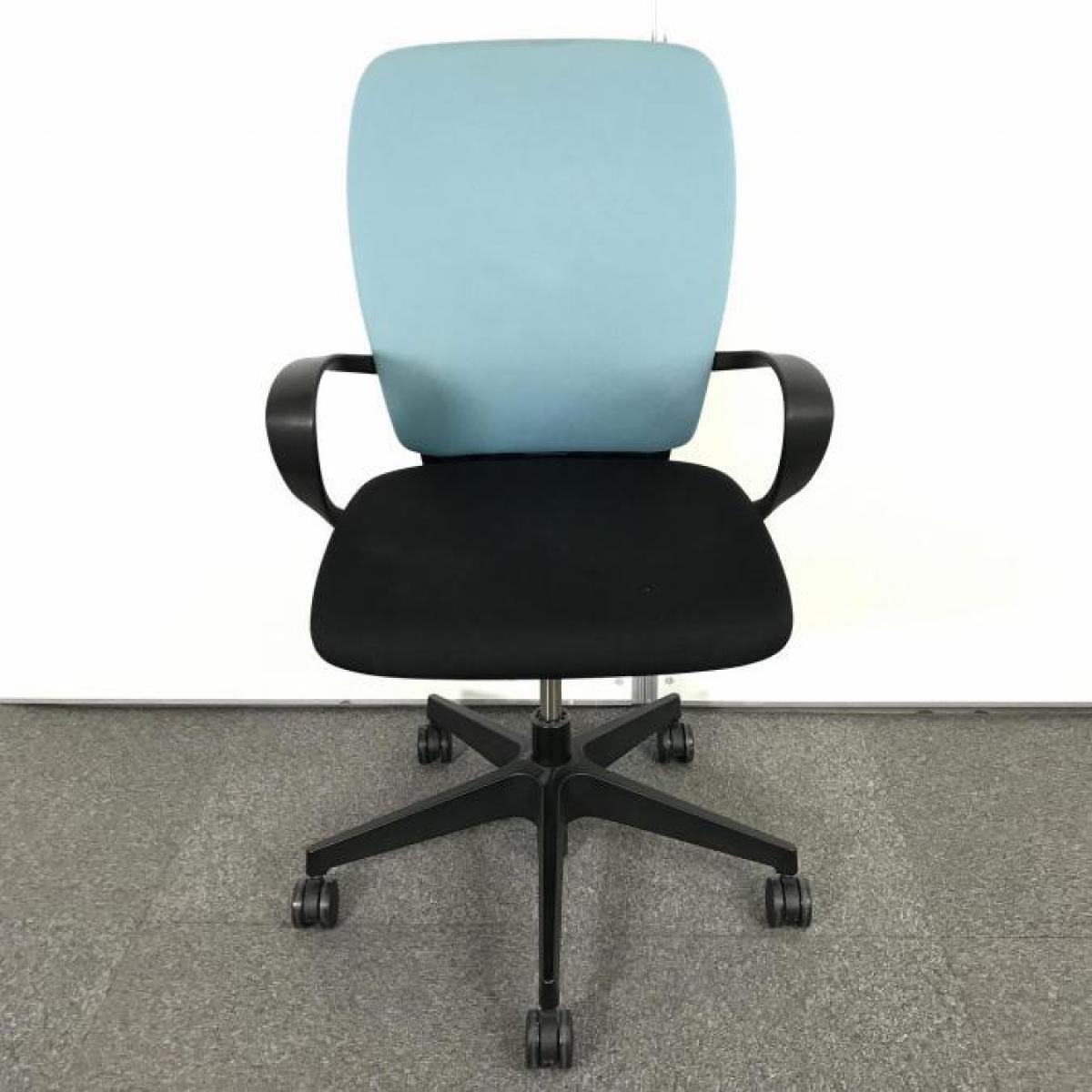 【「汚れにくさ」から生まれたスタイリッシュデザインのOAチェア】【シンプルデザインで機能は充実】■ITOKI(イトーキ)製 fulgo(フルゴ)チェア 肘付き ローバック ■サークル肘 ■背面:ターコイズブルー/座面:ブラック