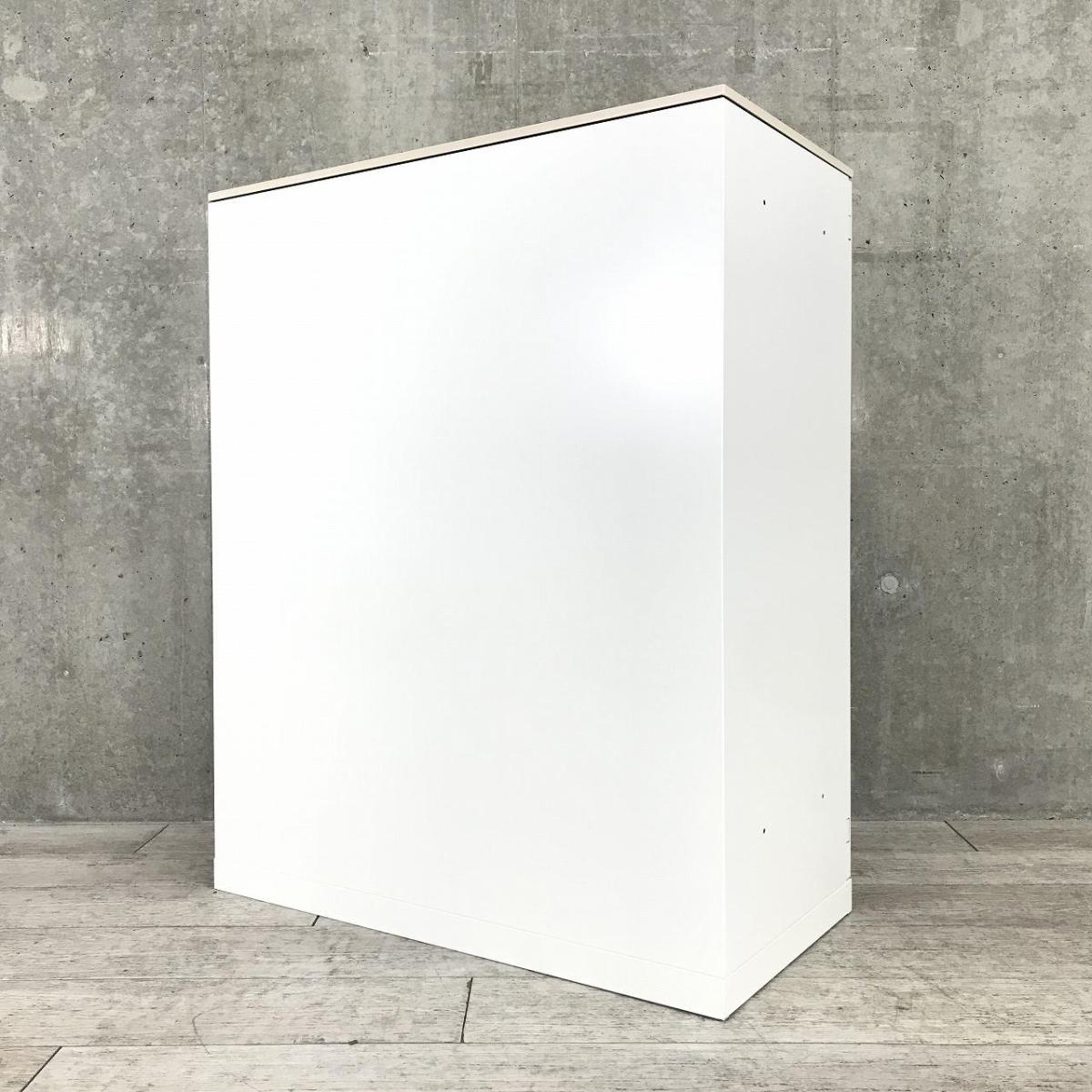 人気のホワイト色、観音開き扉タイプ・幅800mmの少しスリムなサイズ感の書庫です。