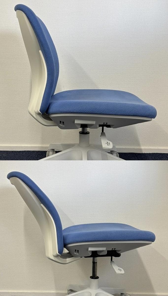 【シンクロ+体重感知、直感的な操作が出来るニュースタンダードチェア!】■クロガネ(KUROGANE)製 トライフィットチェア(Tryfit) 肘無し ローバック ■ブルー×ホワイトシェル- 大阪・堺店