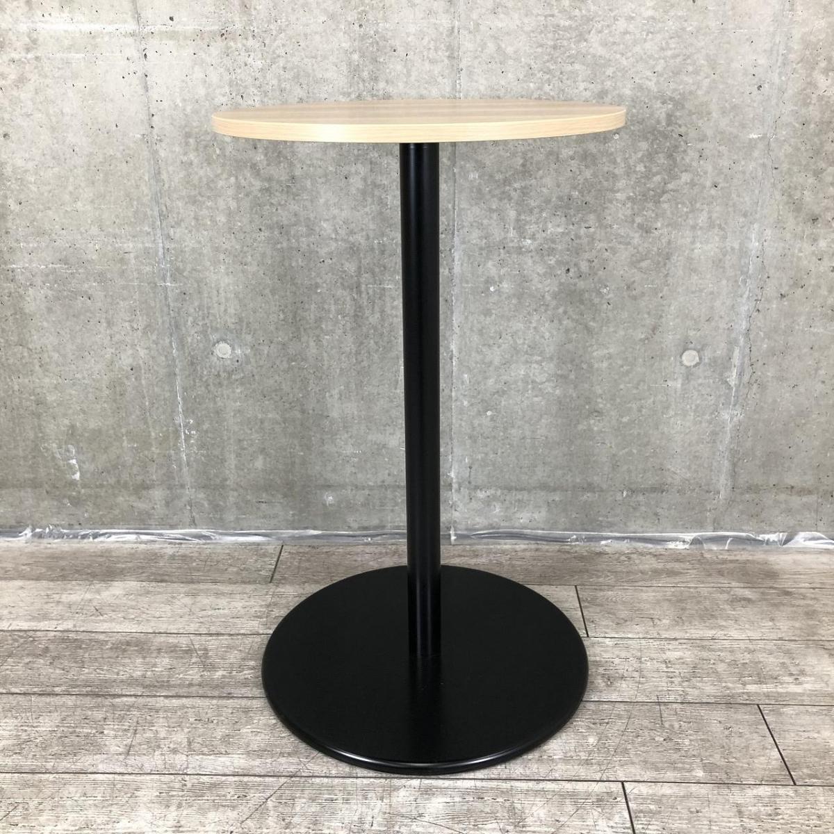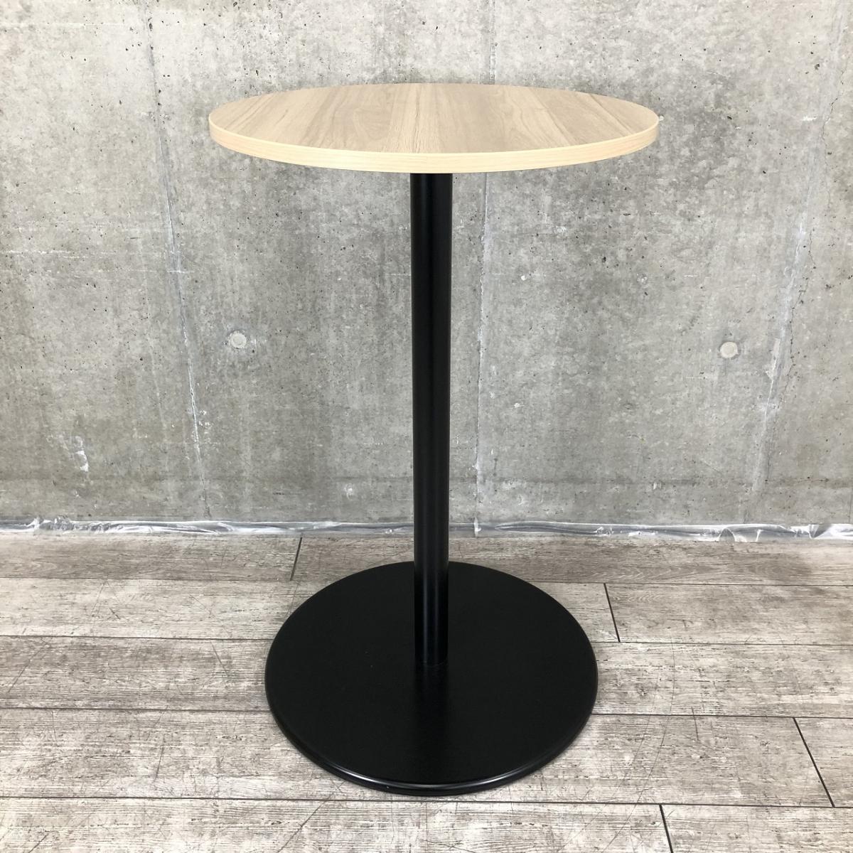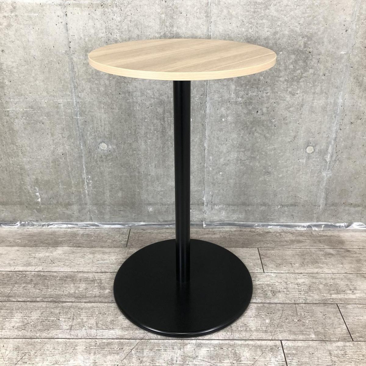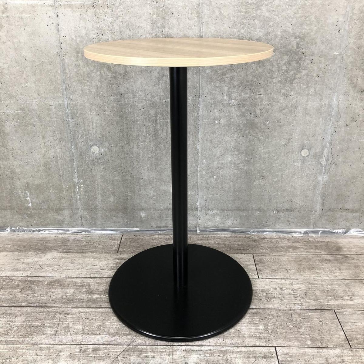【オシャンティなカフェスペースにもフィット!】■ナイキ(NAIKI)製 丸型ハイテーブル W600×H975mm ■オシャレな木目カラー! スタンディングテーブル【ABW】- 川崎店