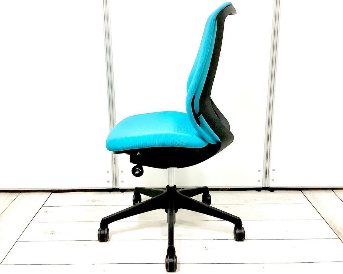 【背のカーブを変えられる! 新感覚のオフィスシーティング!】■オカムラ(okamura)製 シルフィーチェア ■肘無し ■ブルーグリーン×ブラックシェル ※上下昇降ガス圧弱めの商品となります。- つくば店