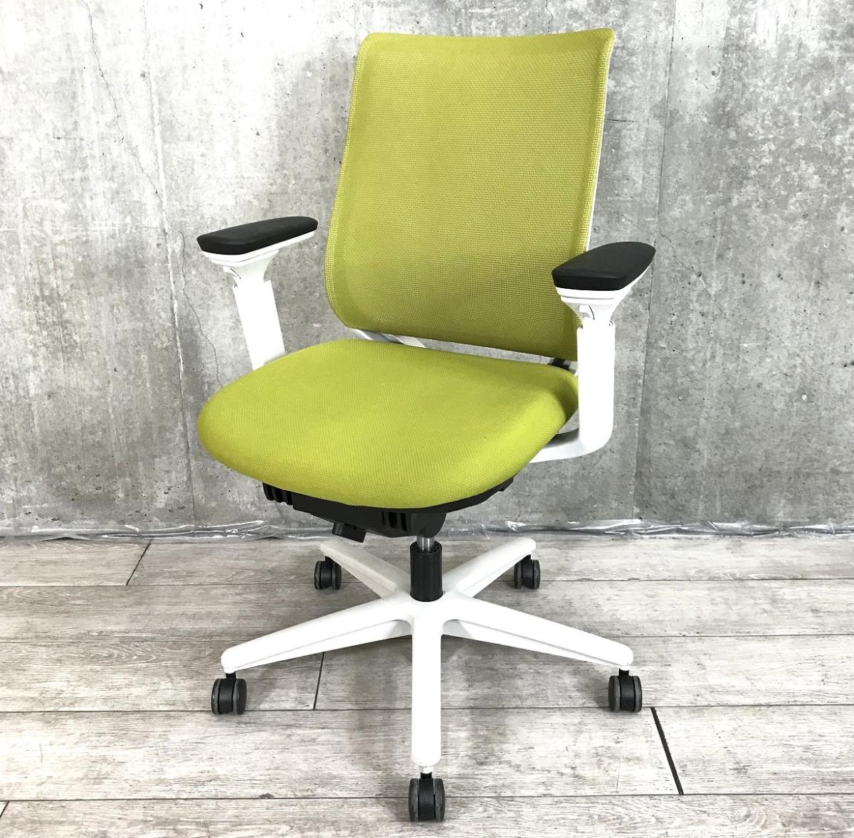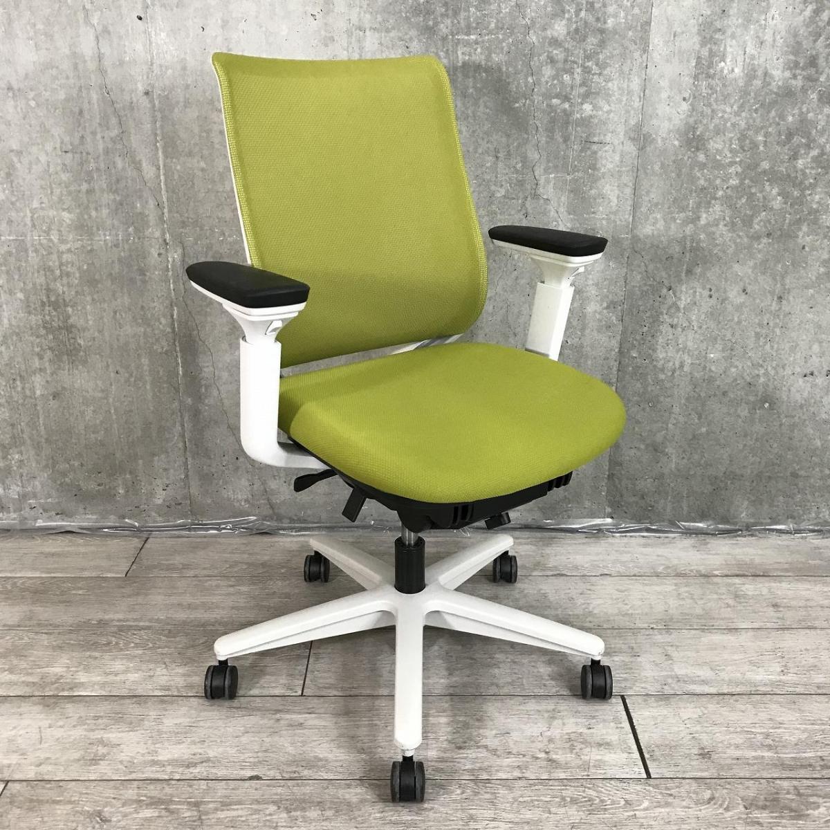 【在庫入替セール品】【すっきりと上質なデザイン!快適な座り心地を実現するオフィスチェア!】■コクヨ(KOKUYO)製 ミトラチェア 肘付ローバック ■ランバー付 背面メッシュ ■ライトオリーブ×ホワイトシェル 【弊社使用欄:A01026681 K】【SN】
