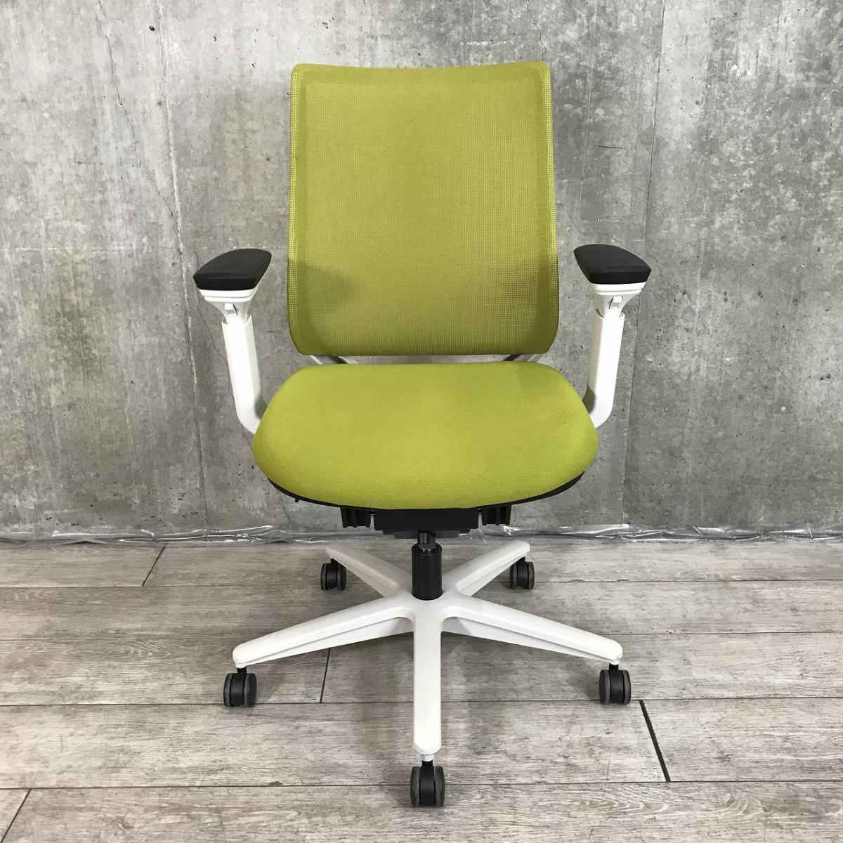 【在庫入替セール品】【すっきりと上質なデザイン!快適な座り心地を実現するオフィスチェア!】■コクヨ(KOKUYO)製 ミトラチェア 肘付ローバック ■ランバー付 背面メッシュ ■ライトオリーブ×ホワイトシェル 【弊社使用欄:A01026681 K】