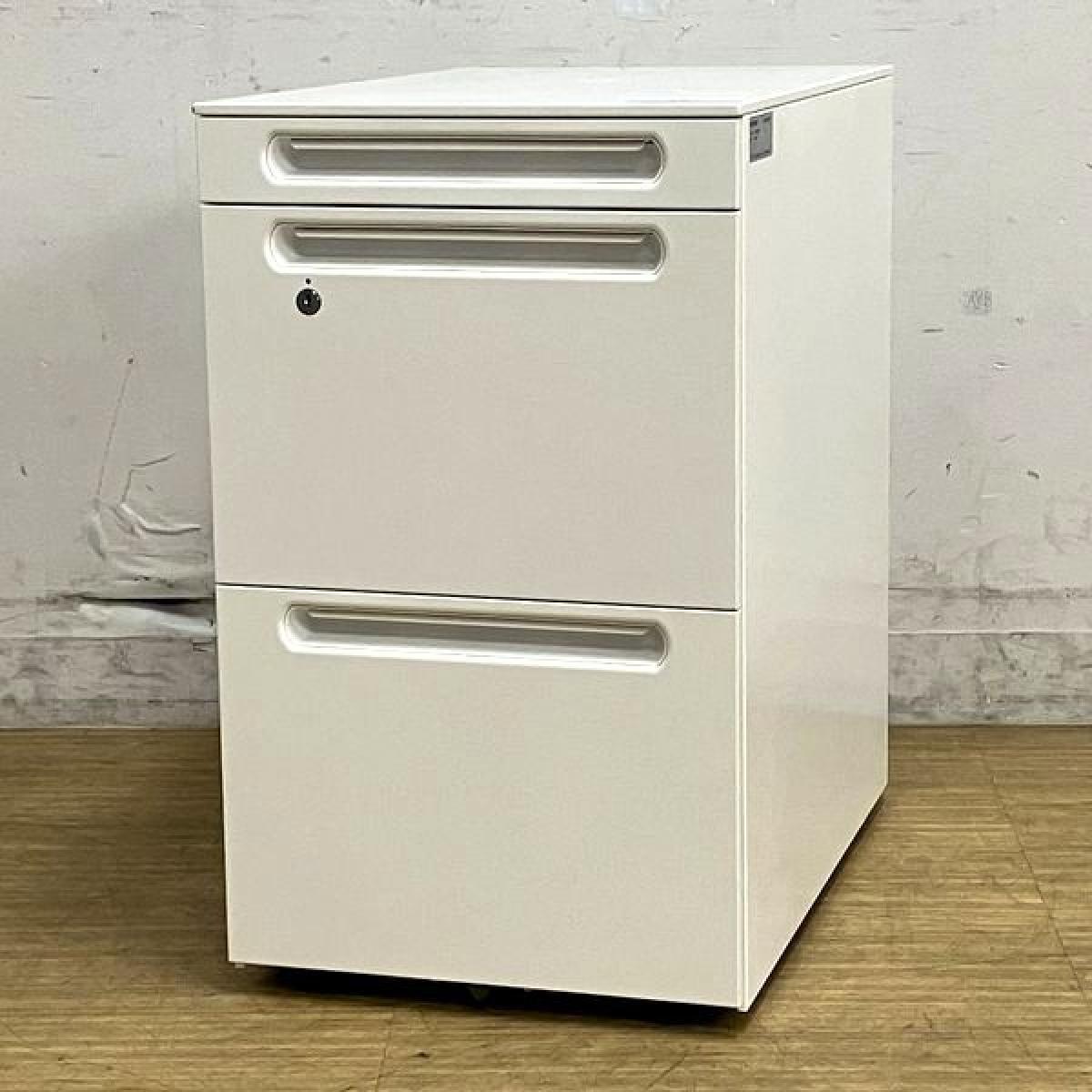 クロガネ 3段ワゴン ホワイト 鍵付き シリンダー錠オフィスバスターズ 東大阪店 【W】- 東大阪店
