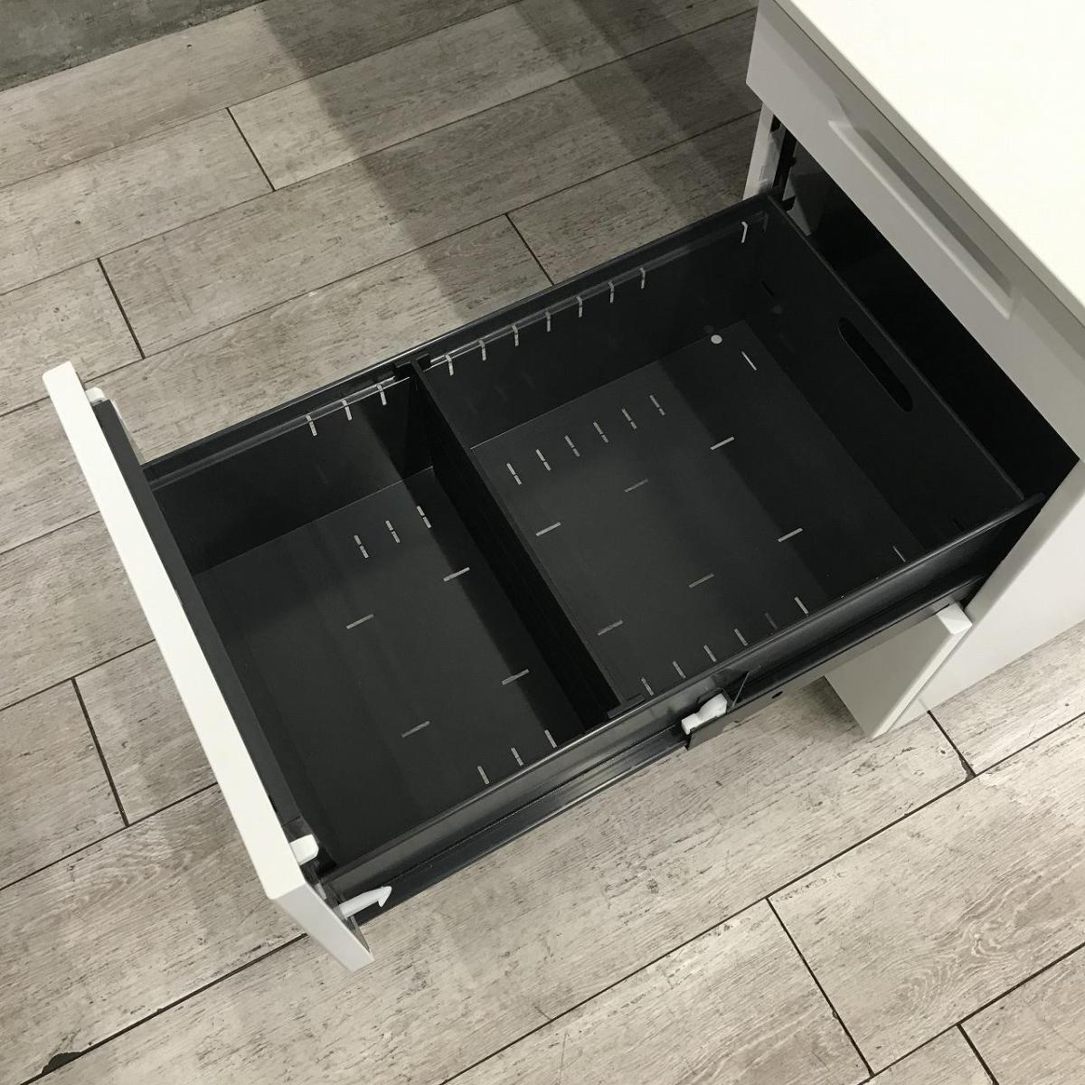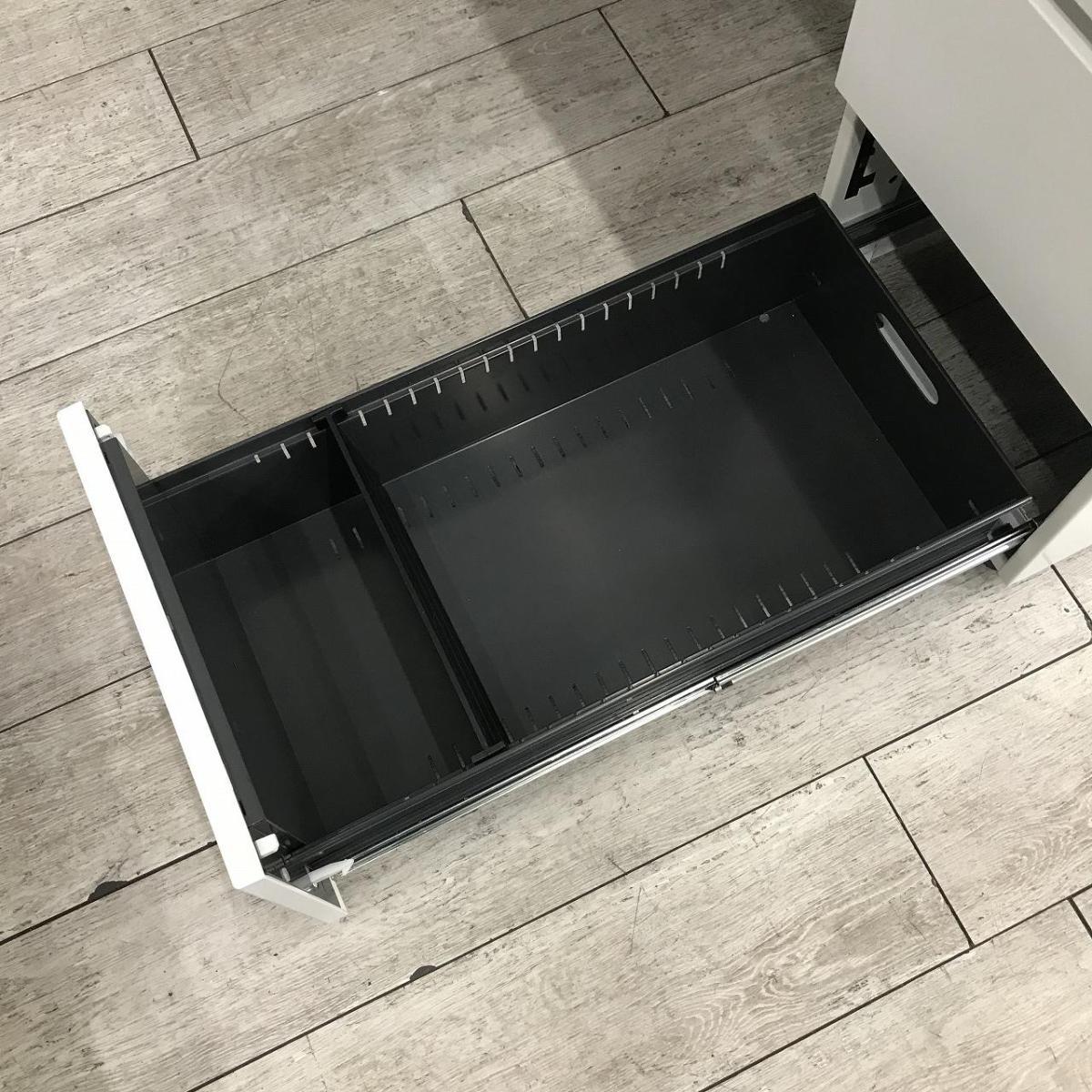 コクヨ/KOKUYO isシリーズ 疑似的な片袖机(平机+2段ワゴンのセット) ホワイト センター引出し付 W1400のゆったり使用できるサイズ感