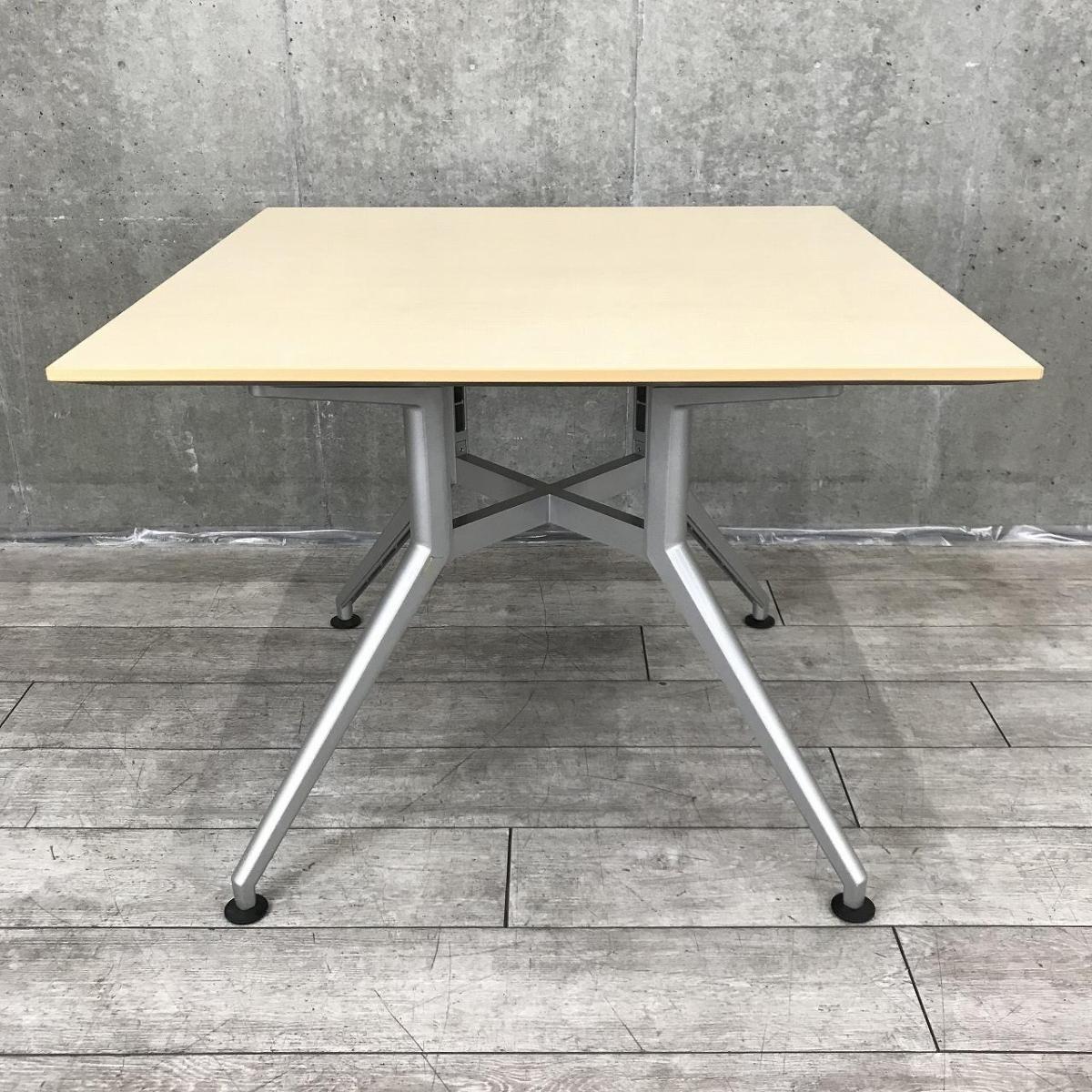 【定価約18万円】【シンプルなデザインのミーティングテーブル!】■イトーキ/DDシリーズ ■木目ナチュラル ■シルバー脚 ■2~4人使用向け!