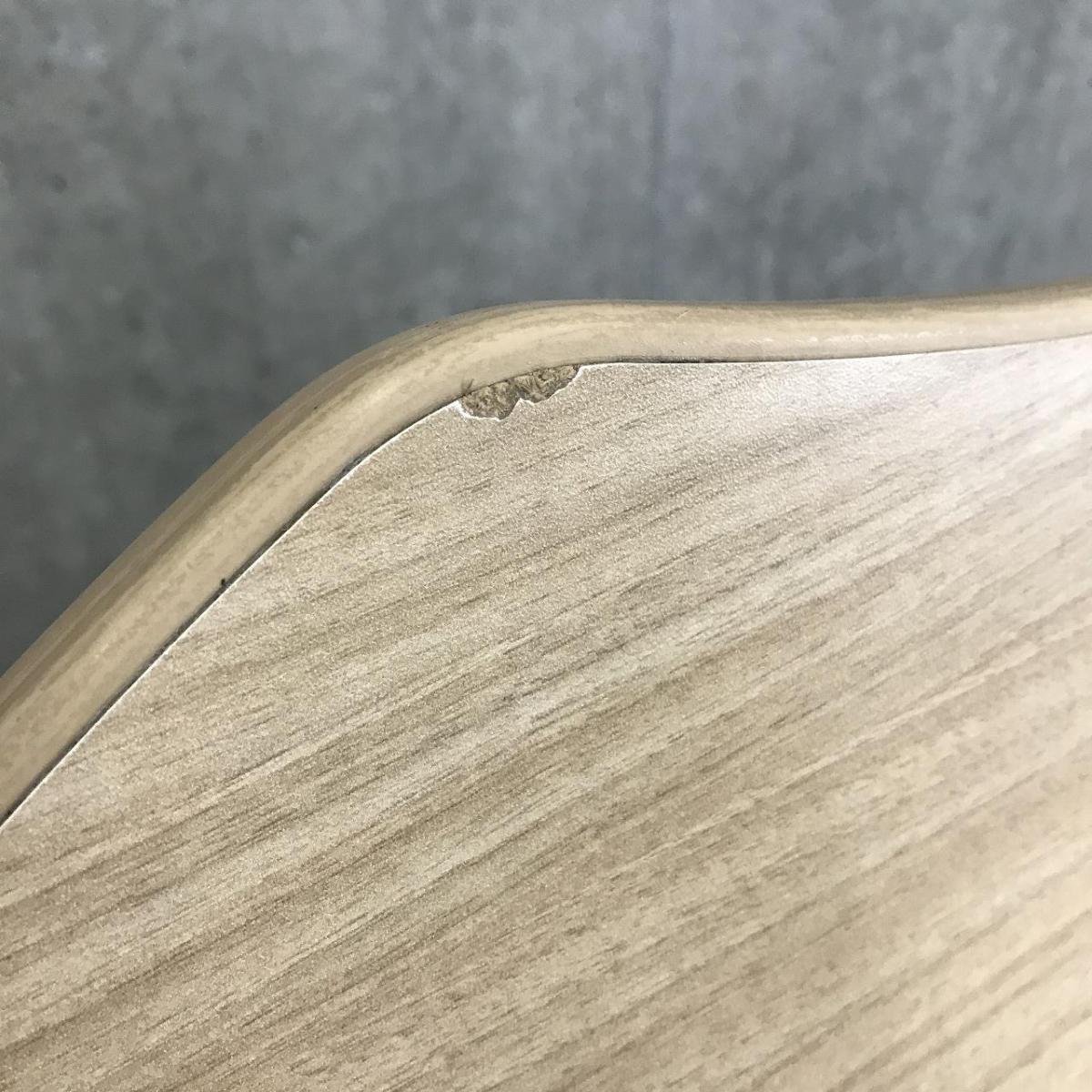 - 一部不具合あり天板歪み、アジャスター無し、キャスター使用不可ようなそのテーブルの本来の効用を果たすための機能以外の一部が使用不可な状態。(例、キャスターロッ ク機能使用不可、棚板無し等がある。)