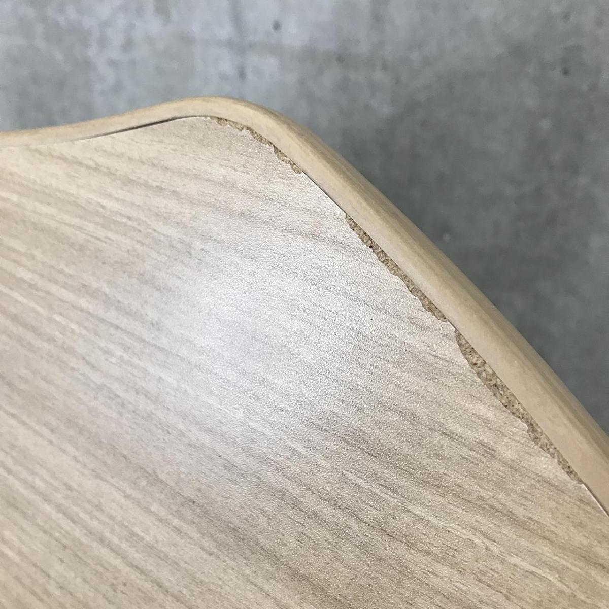 - あり黄ばみ・変色が広い範囲にうっすらある、または濃い黄ばみ・変色が一部ある。(例、天板、幕板、棚板、サイド部分、脚部等にある。)