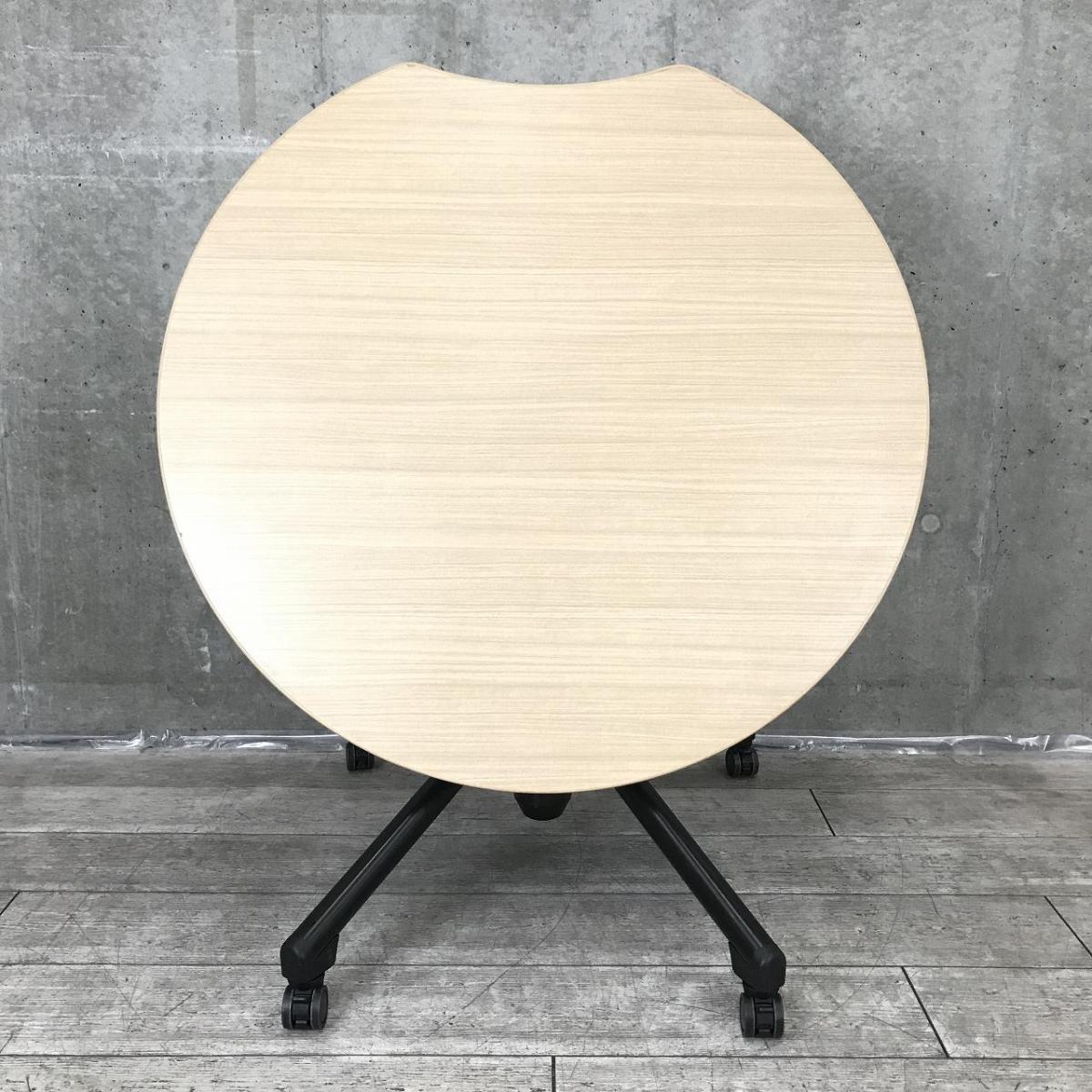 【折りたたみ+上下昇降+スタッキング可能!】【カフェ調オフィスや休憩スペースに】■イトーキ製 ソレイユ 丸テーブル ■アップル型 フルスペックタイプ ■上下昇降 高さ720~1000㎜ ■天板ナチュラル×ブラック脚 【ABW商材】【関東倉庫在庫品】【弊社使用欄:A01044104】- 全店共通商品