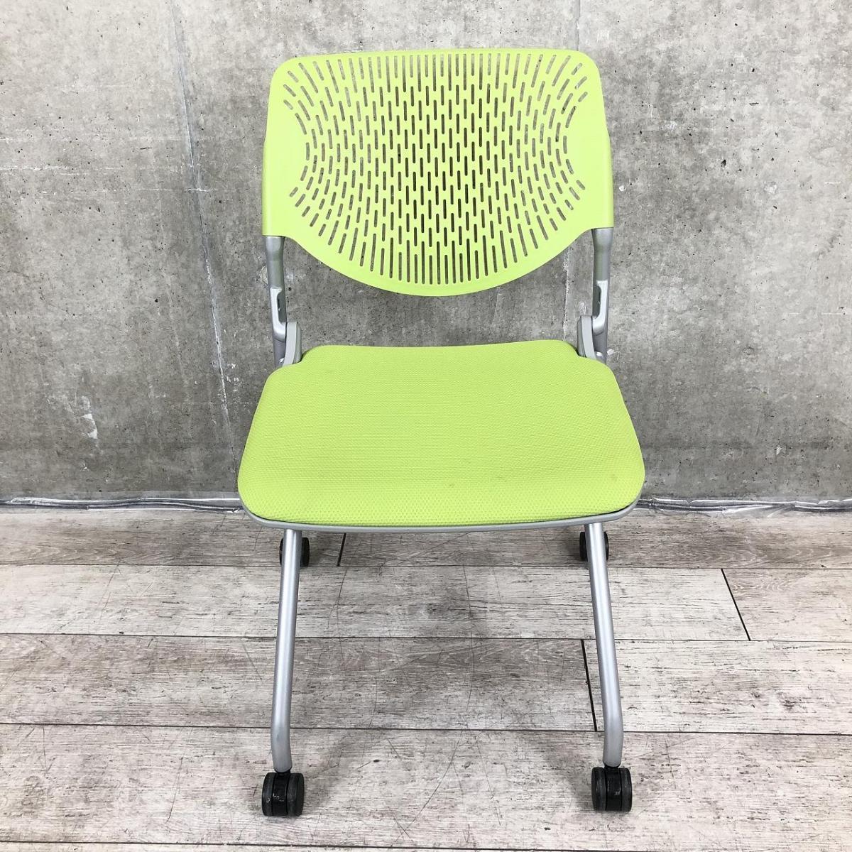 【関東倉庫在庫品】【フレキシブルに使える!使わない時は省スペースで収納可能!】■オカムラ製 ルナ ネスティングチェア ■グリーン【弊社使用欄:A01008467】【ECBMC】
