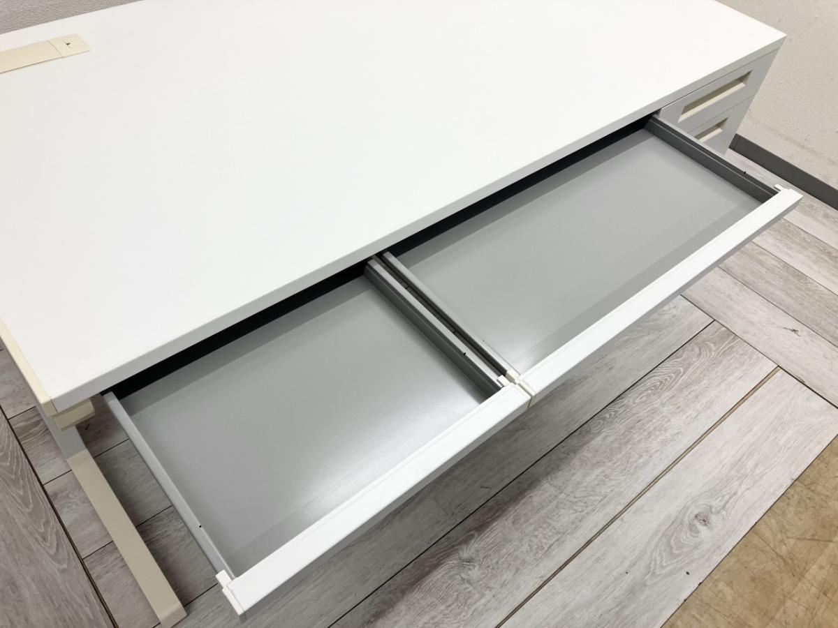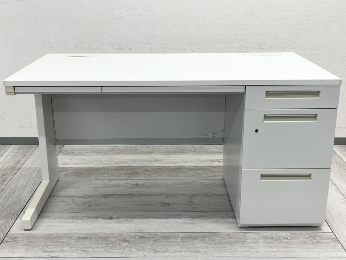 【在庫入替セール】片袖机 イナバ デュエナ W1400のおおきめサイズ 清潔感のあるホワイトカラー 鍵付き ※天板ふちにキズの補修跡あり