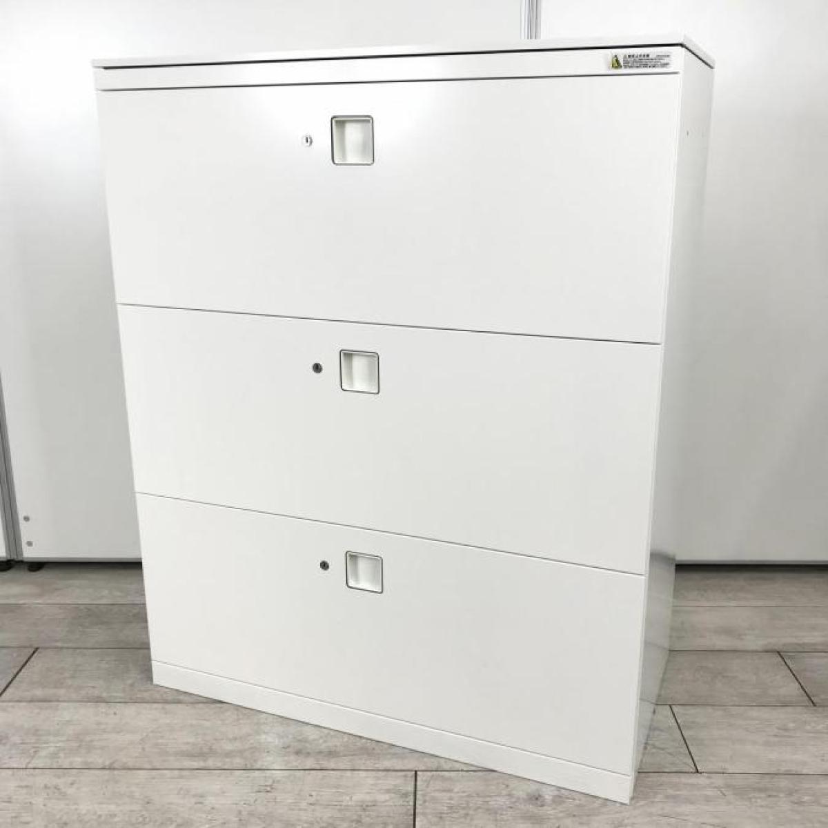 ■各引き出しにカギ付き!■セキュリティ万全!■Okamura/オカムラ ■レクトラインシリーズ ■3段ラテラル書庫 ■ローキャビネット ■ホワイト(white)■シリンダー錠 【2505】弊社使用欄【A01016727】- 埼玉本店