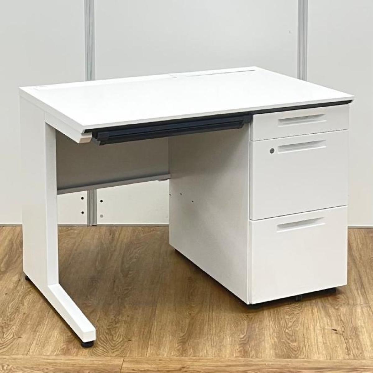 【省スペースのオフィスに最適!コンパクトサイズの片袖机!配線カバーも充実の高品質デスク!】■コクヨ(KOKUYO)製 アイエス(iS)シリーズ 片袖机 W1000×D700㎜ ■シリンダー錠 ■ホワイト