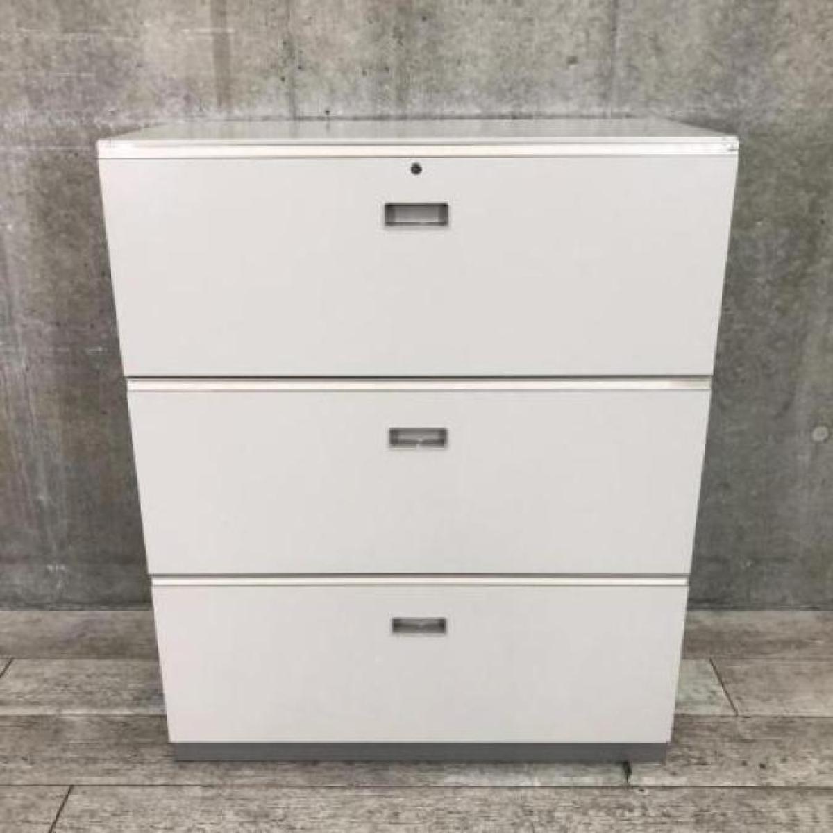 【4台限定在庫入替セール品】イトーキ製の定番書庫!人気の引き出し(ラテラル)タイプになります! イトーキ シンライン ホワイトグレー 3段ラテラル 天板付き