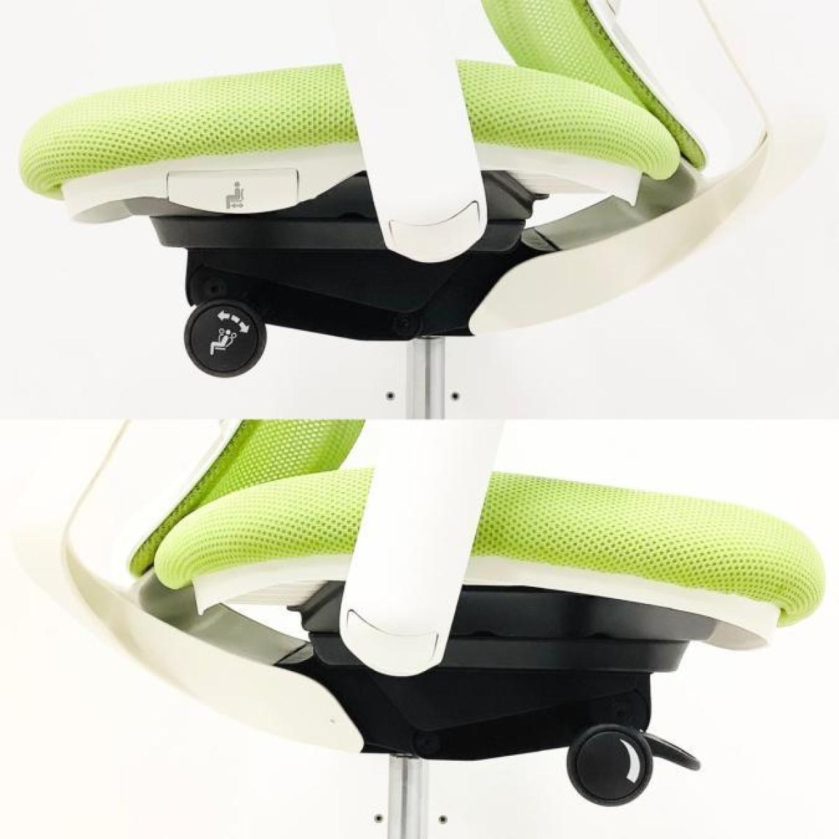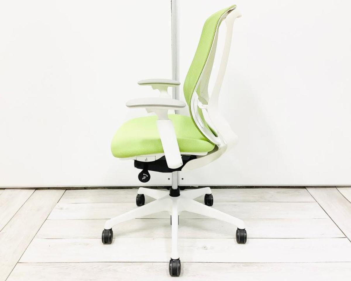 【前傾チルト機能付き!オカムラ製品で最も人気を集める高機能メッシュチェア!】■オカムラ(okamura)製 シルフィ(Sylphy)チェア ハイバック 肘付き ■可動肘 ■ライムグリーン × ホワイトシェル【状態良好品!】