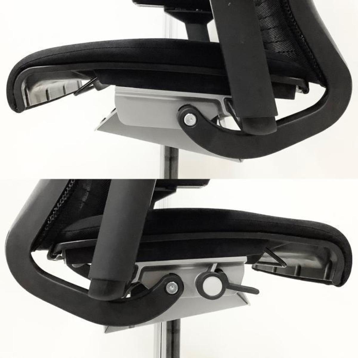 快適な座り心地に不可欠な調節機能である、上下昇降、座面の奥行き調整、リクライニングなどを備えており、操作もわかりやすく好評です。 特に、座面の奥行きは、座面下の左右に通った細いバーで調整でき、座ったままで軽やかに滑るように調整が可能です。 価格面では、新品では高めですが、中古は流通も多く、定価の3割前後の価格で高級チェアの座り心地を手に入れることができます!