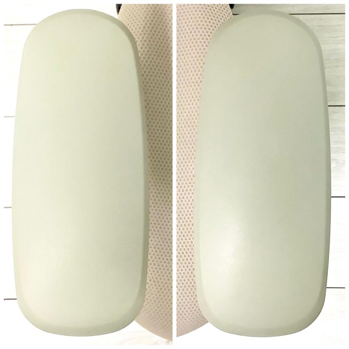 - かなり強い濃い黄ばみ・変色が商品全体にある。(例、座面・背もたれ、脚部等にある。)